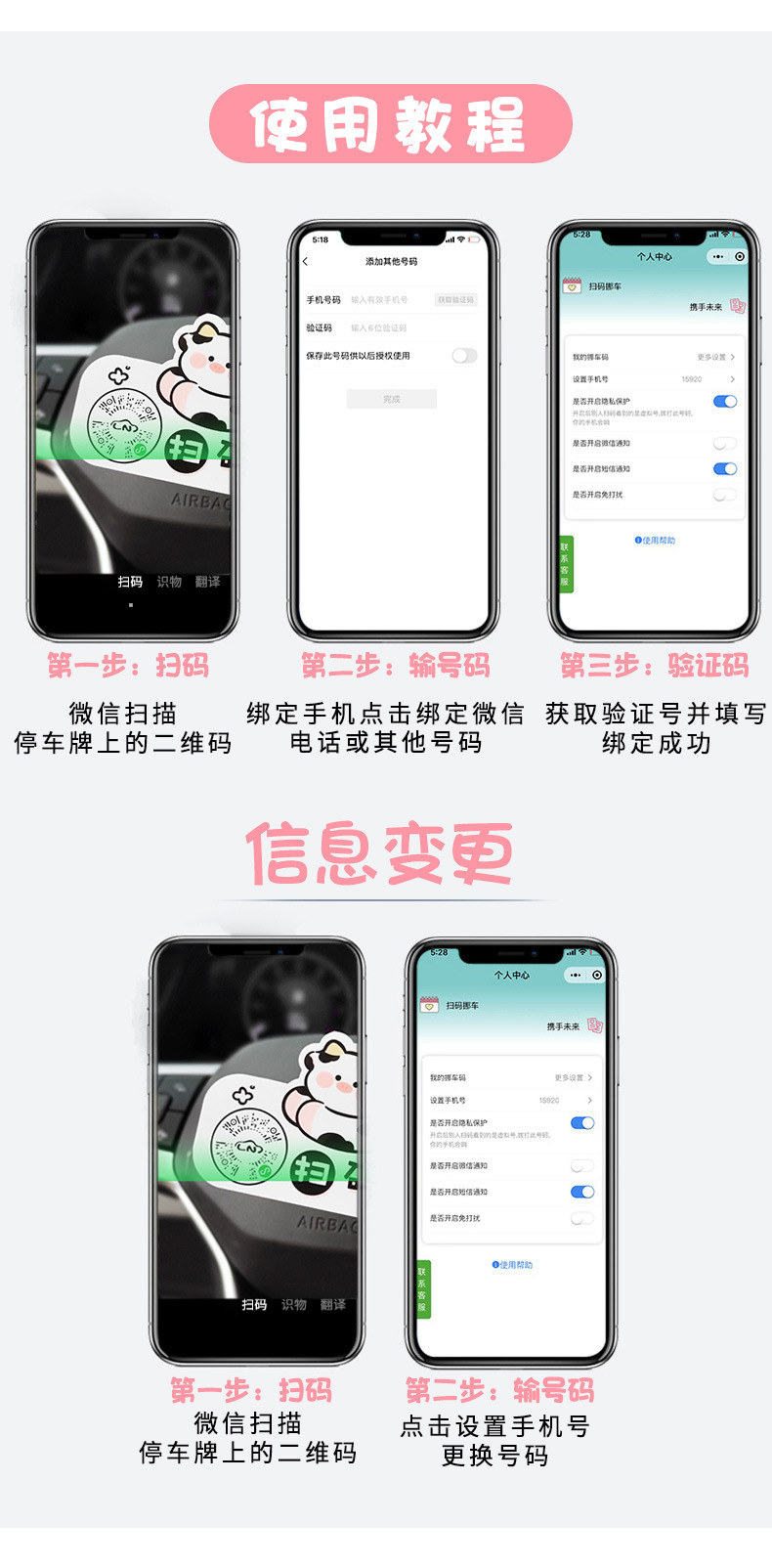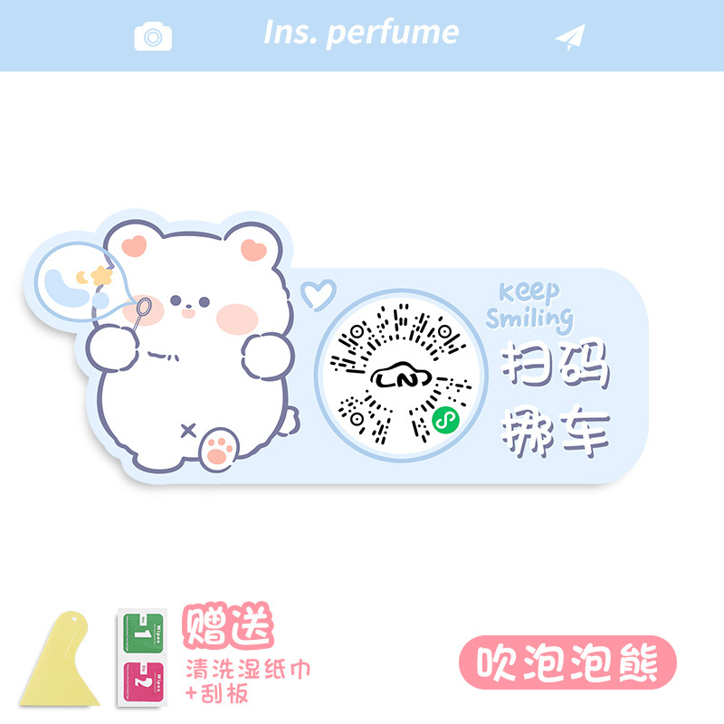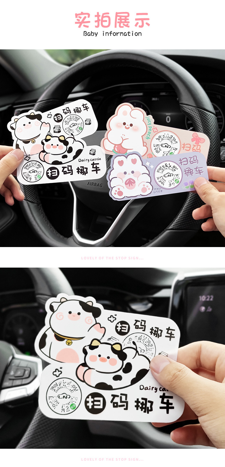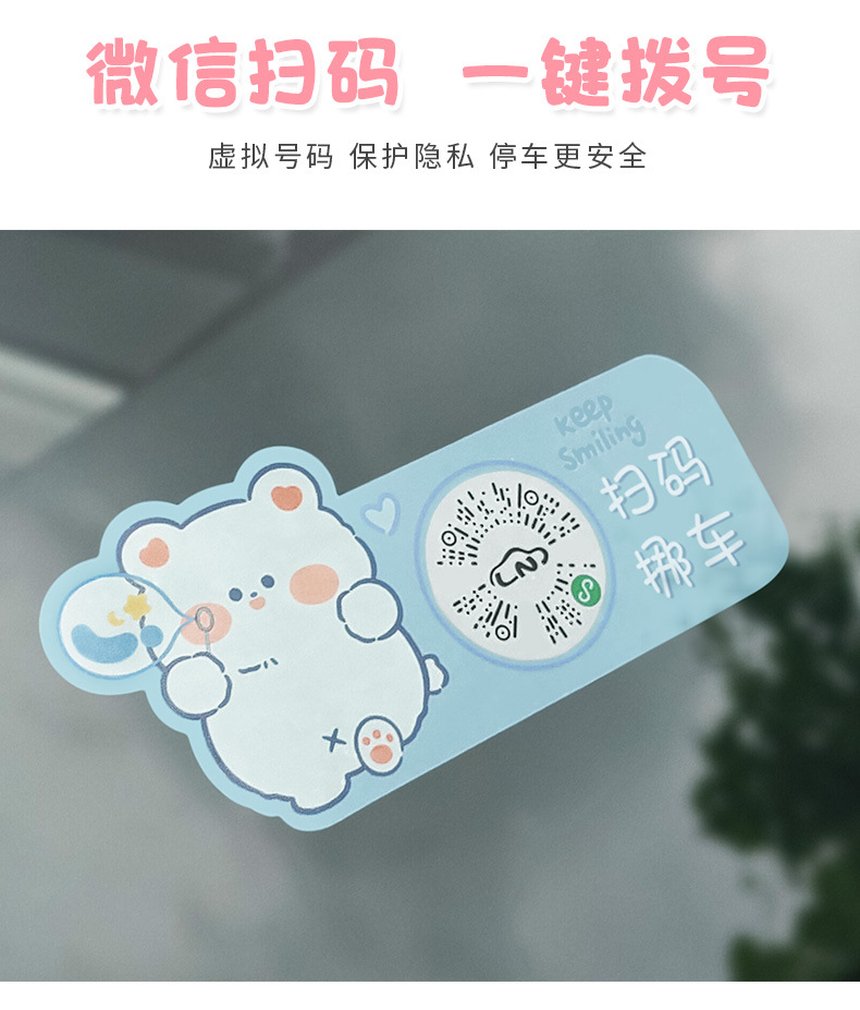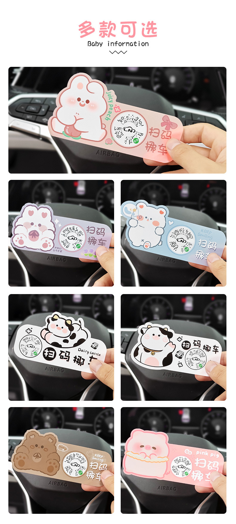 크리 에이 티브 딸기 곰 임시 스캔 코드 주차 표시 자동차 만화 QR 코드 자동차 전기 스티커 자동차 개인 정보 번호