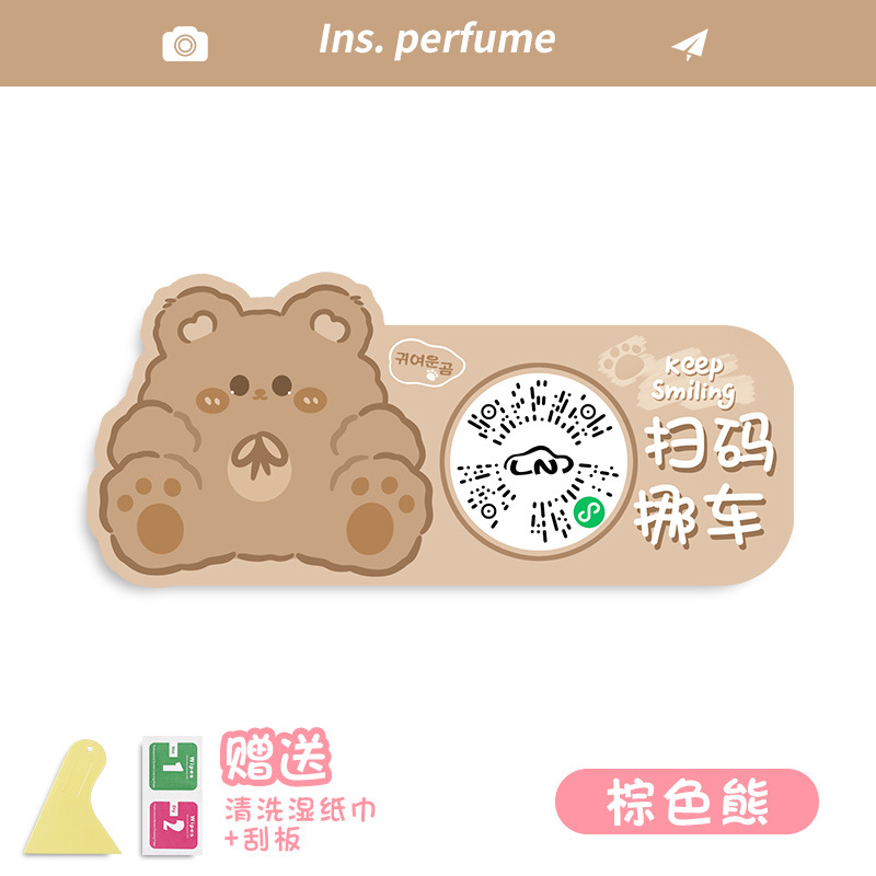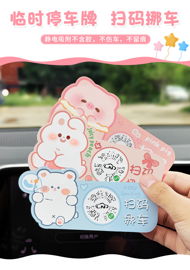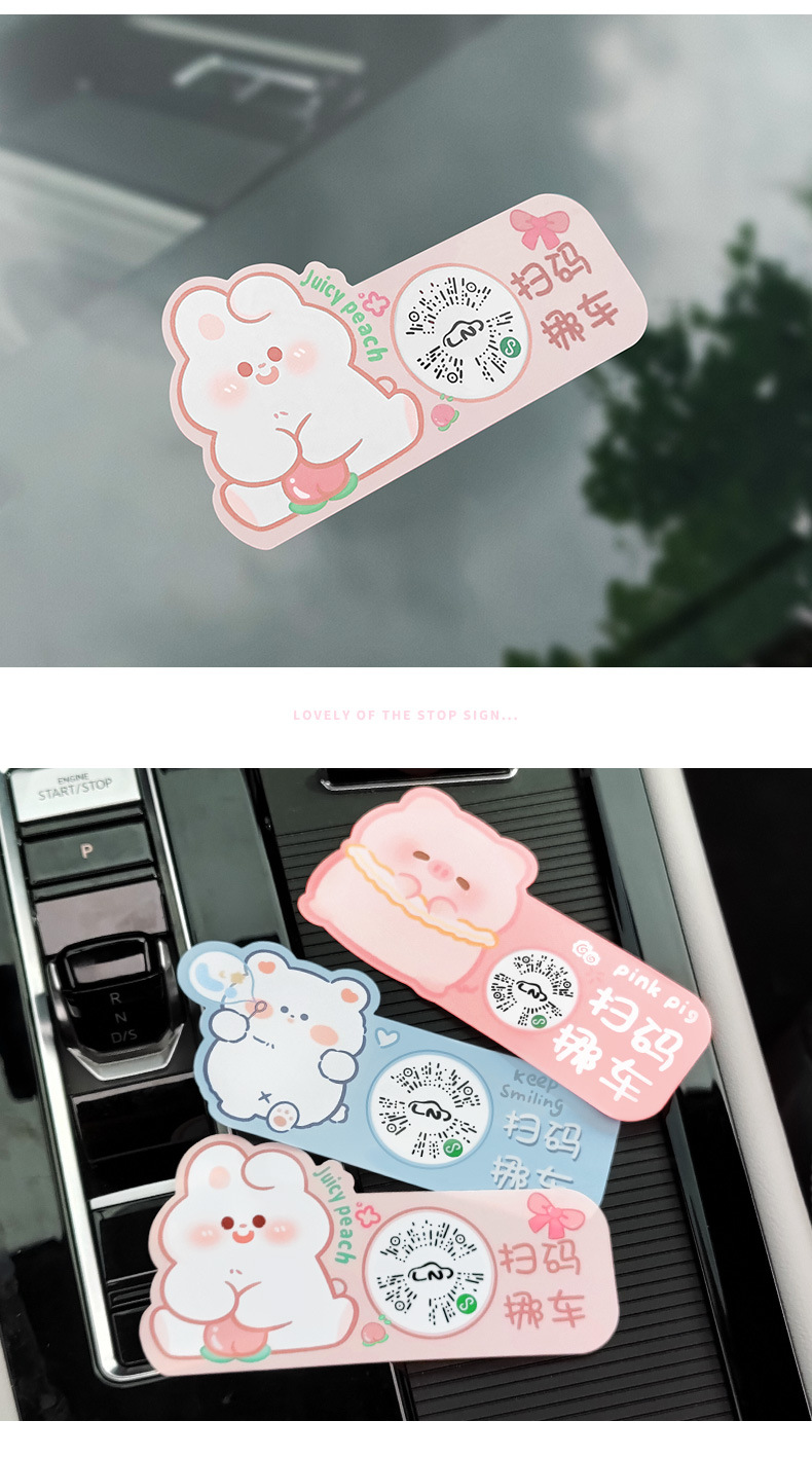 크리 에이 티브 딸기 곰 임시 스캔 코드 주차 표시 자동차 만화 QR 코드 자동차 전기 스티커 자동차 개인 정보 번호스토어 가기