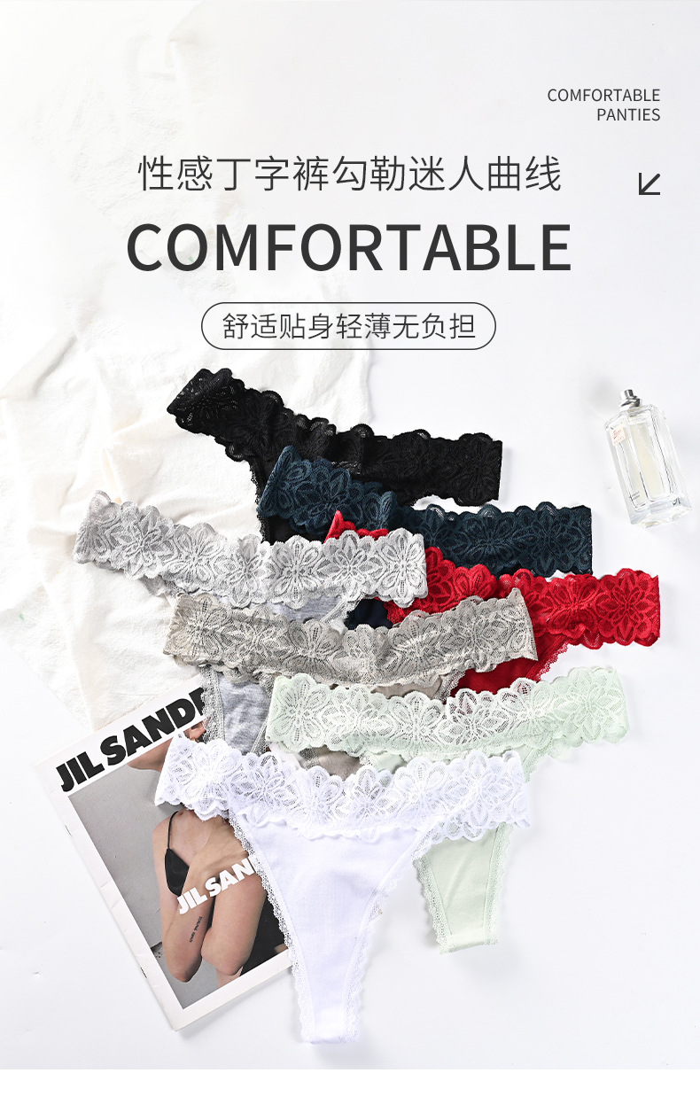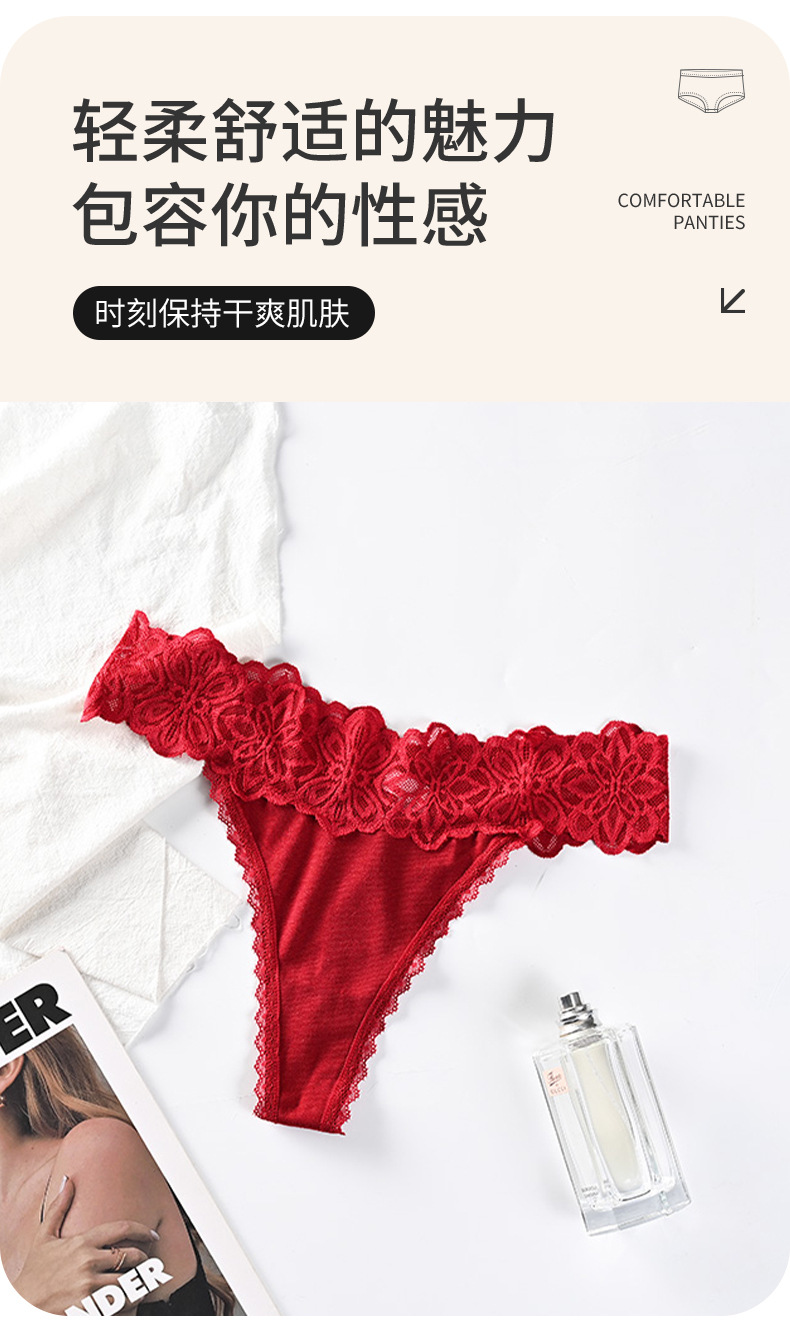 유럽과 미국 여성 속옷 레이스 중공 관점 낮은 허리 속옷 여성 프랑스어 딥 V 섹시한 소녀 t 바지 도매스토어 가기