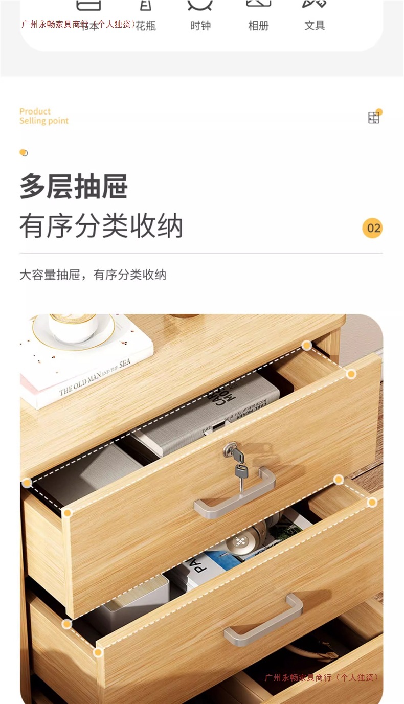 • [높은 서랍 2개와 문 1개] 웜화이트 44*39*65cm 슬라이드 레일 포함