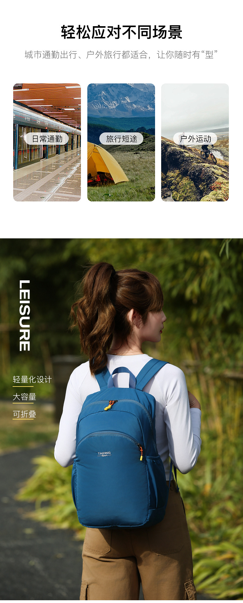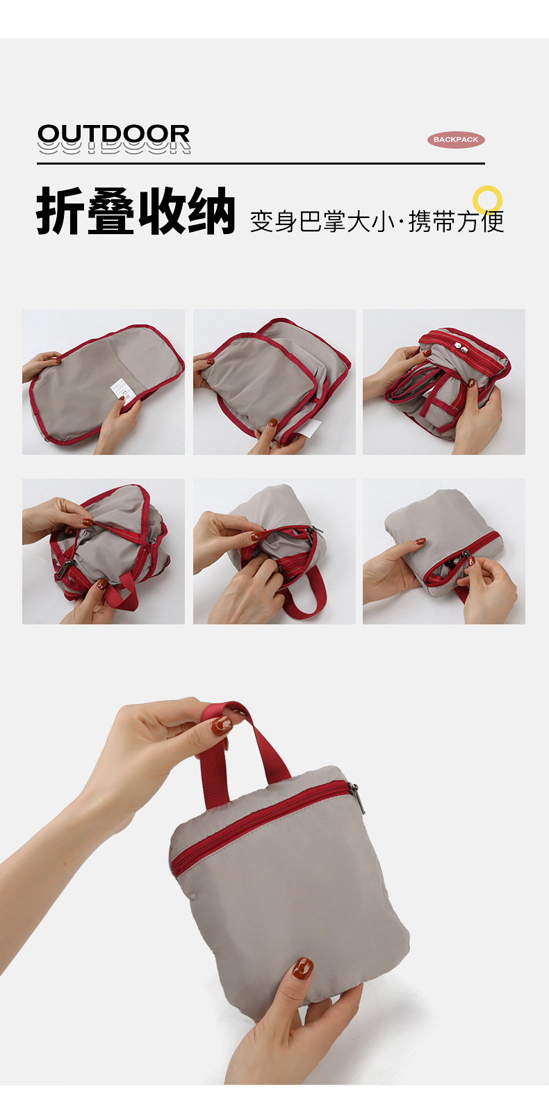 트렌디하고 심플한 야외 접이식 스킨백, 초경량 다용도 백팩, 스포츠 여행용 경량 휴대용 등산 가방
