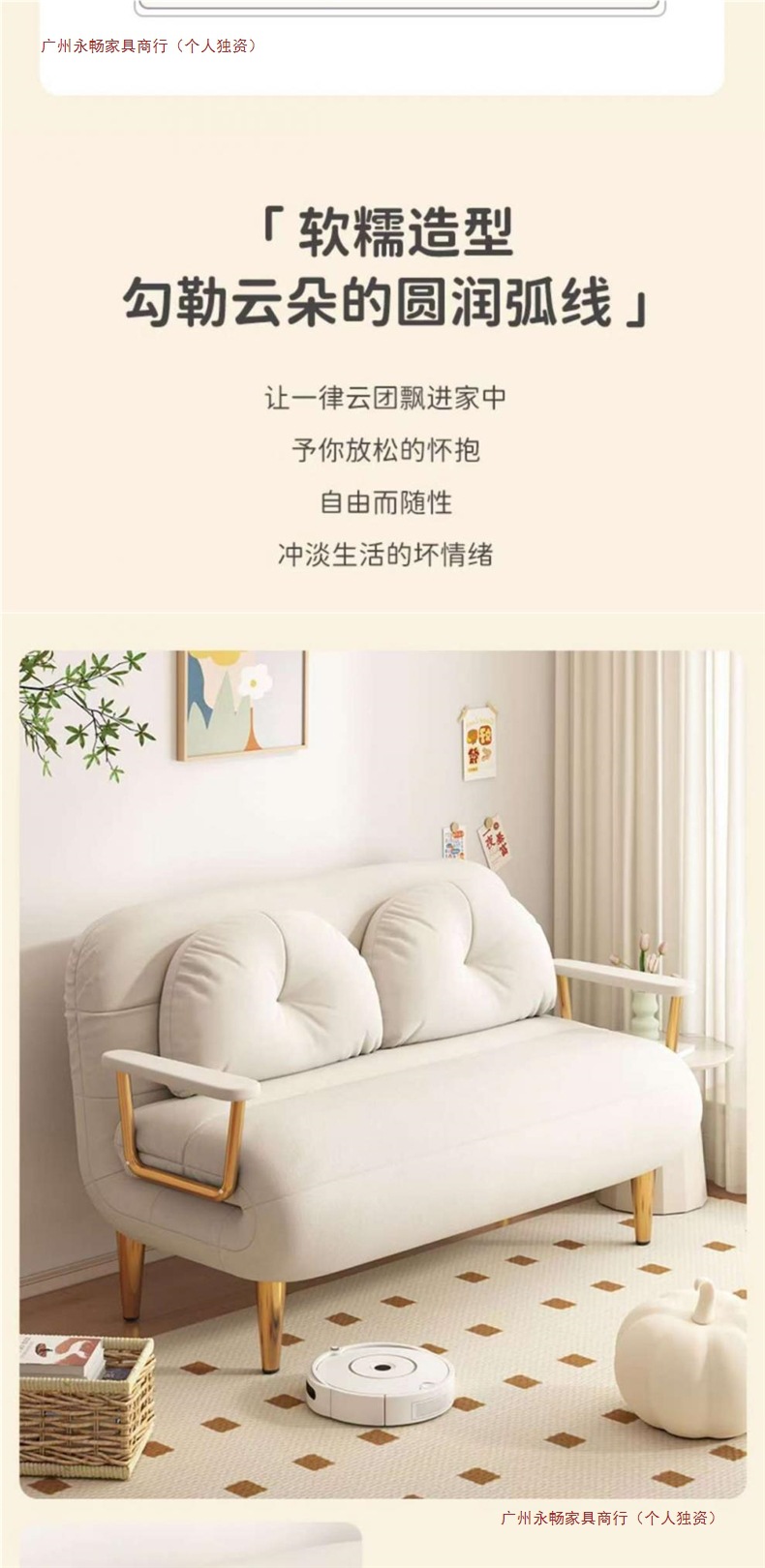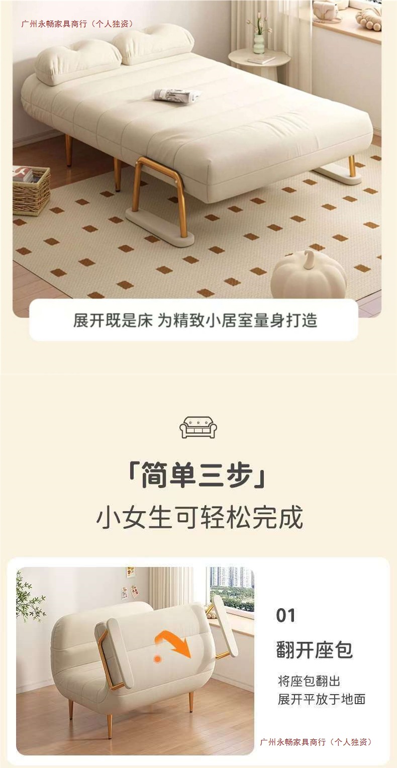 접이식 소파 베드 이중 목적 싱글 작은 아파트 발코니 거실 다기능 클라우드 소파 크림 스타일 간단한 소파스토어 가기