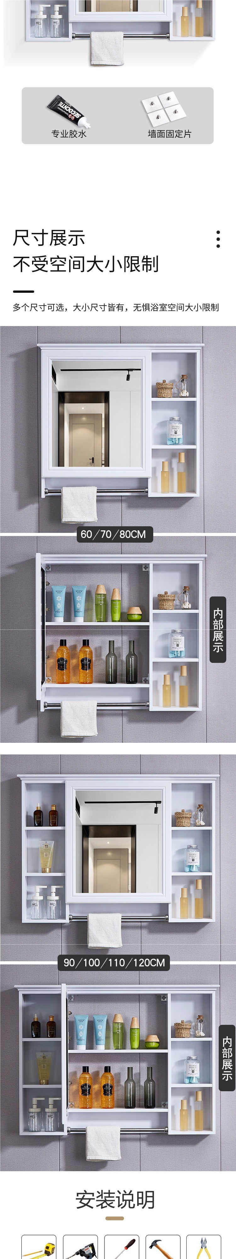 • Su Xiangtong (업그레이드 모델)-70CM 단단한 나무 수납 거울 캐비닛