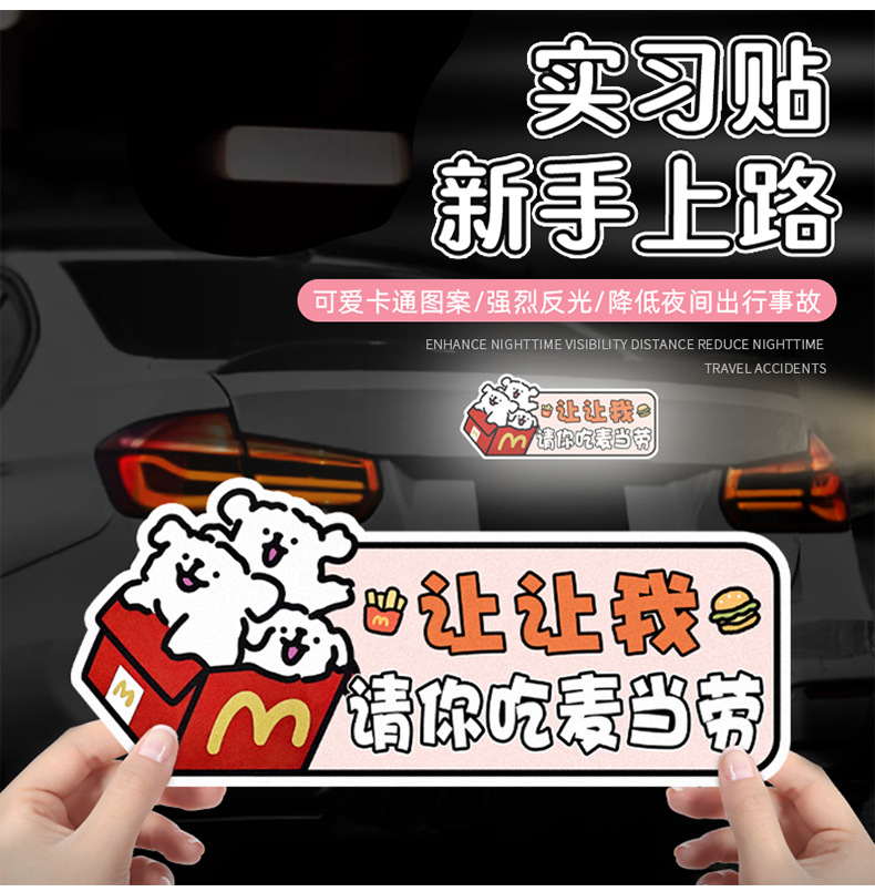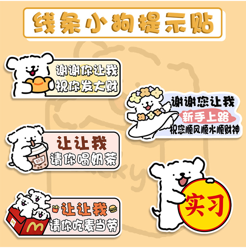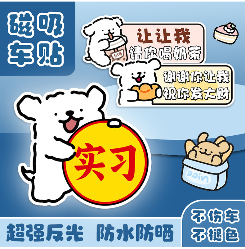 라인 강아지 자동차 초보자 인턴십 자동차 스티커 차량 간격 유지 알림 스티커 방수 자외선 차단제 자기 바디 스티커스토어 가기