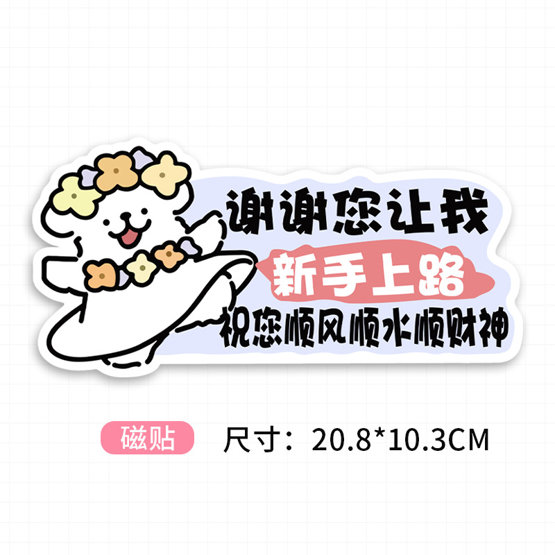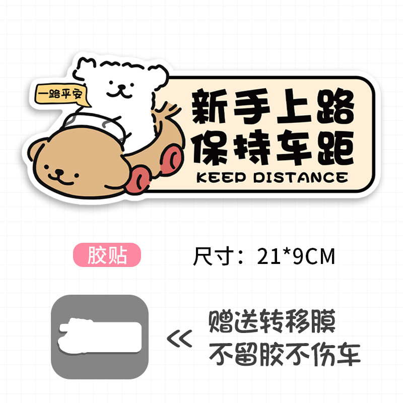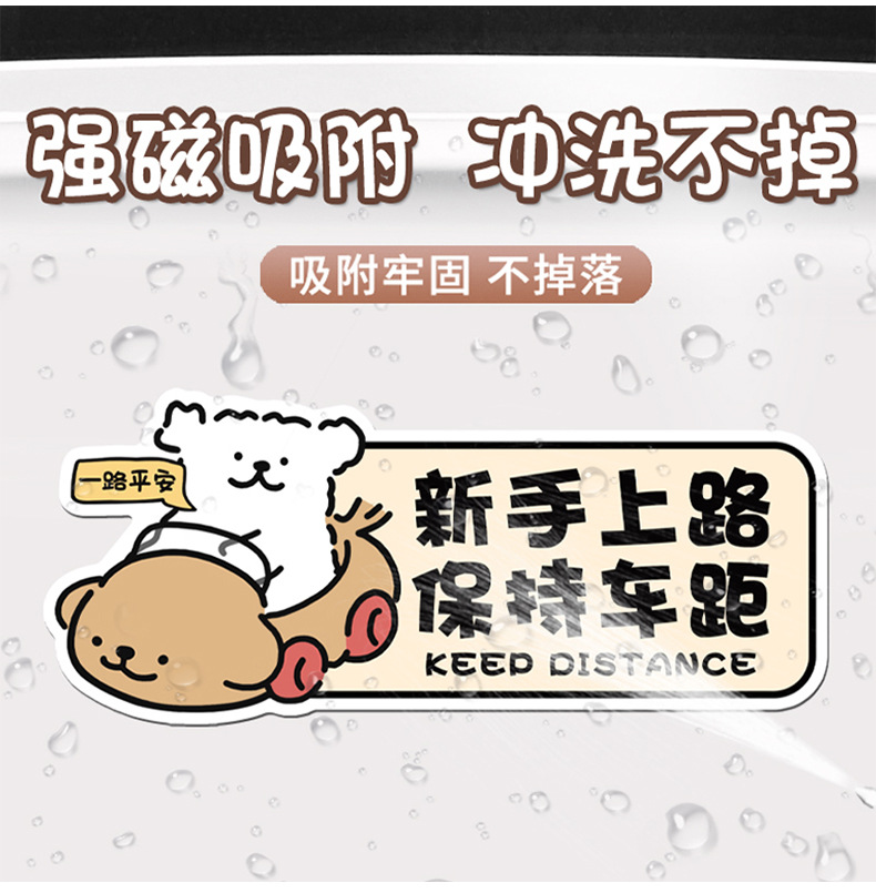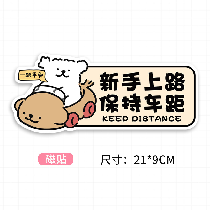 라인 강아지 자동차 초보자 인턴십 자동차 스티커 차량 간격 유지 알림 스티커 방수 자외선 차단제 자기 바디 스티커