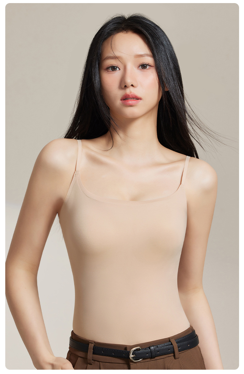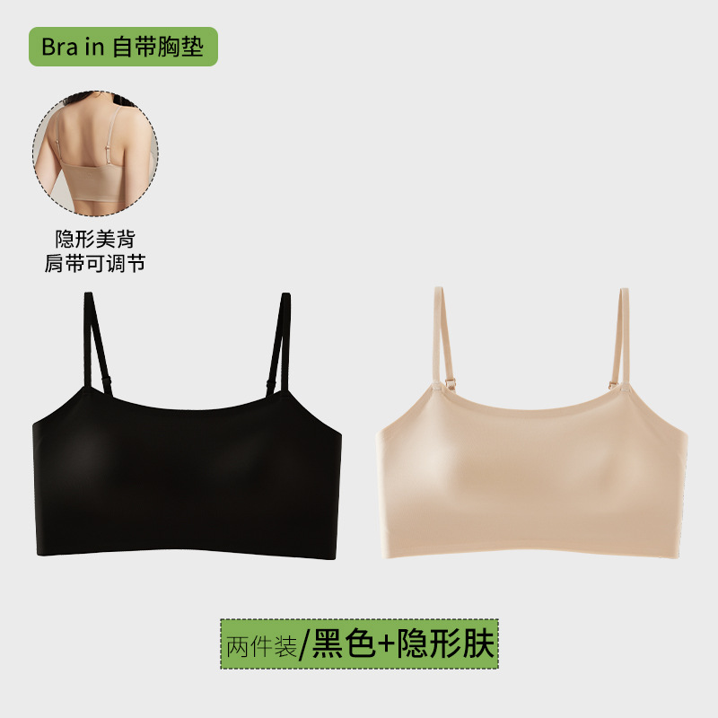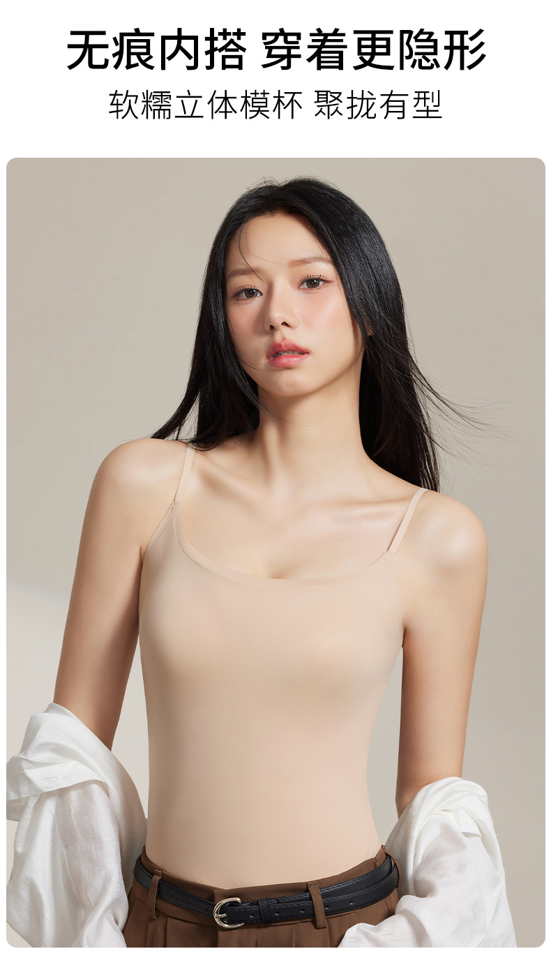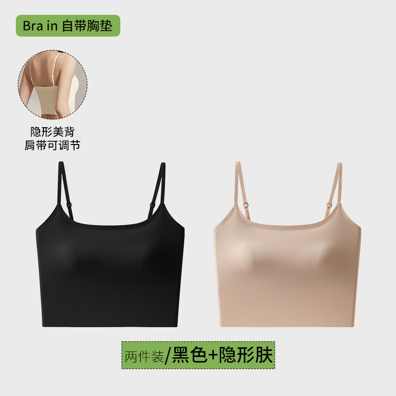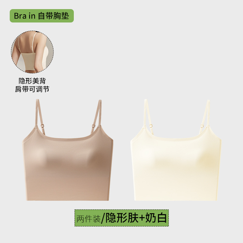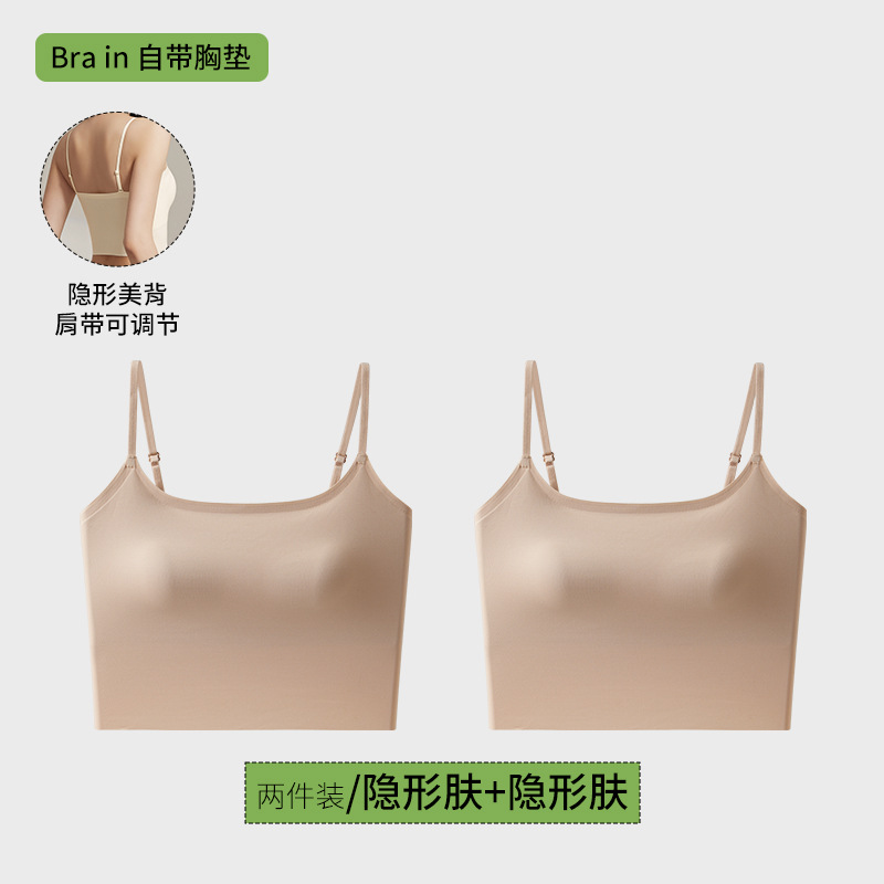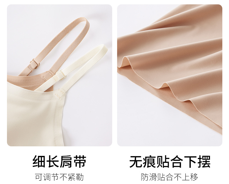 여름 여성용 심리스 리퀴드 파운데이션 속옷, 얇은 어깨끈, 아이스 실크 뷰티 백, 보이지 않는 브라, 가슴 수축, 노출 방지, 스킨 컬러 조끼