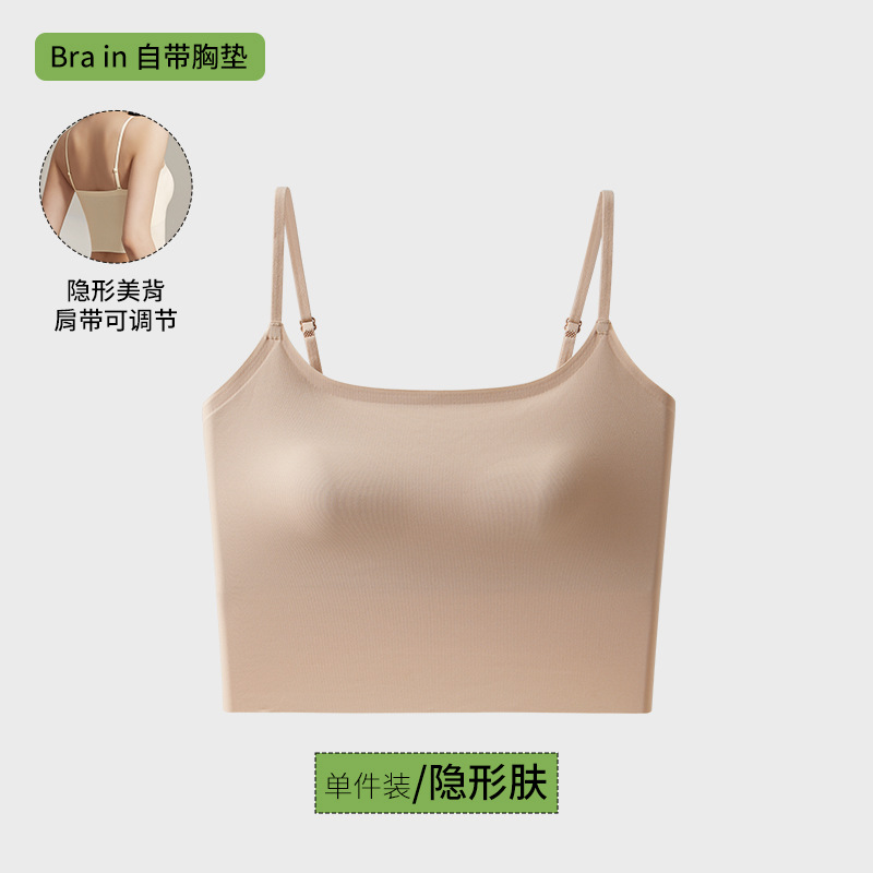 여름 여성용 심리스 리퀴드 파운데이션 속옷, 얇은 어깨끈, 아이스 실크 뷰티 백, 보이지 않는 브라, 가슴 수축, 노출 방지, 스킨 컬러 조끼스토어 가기