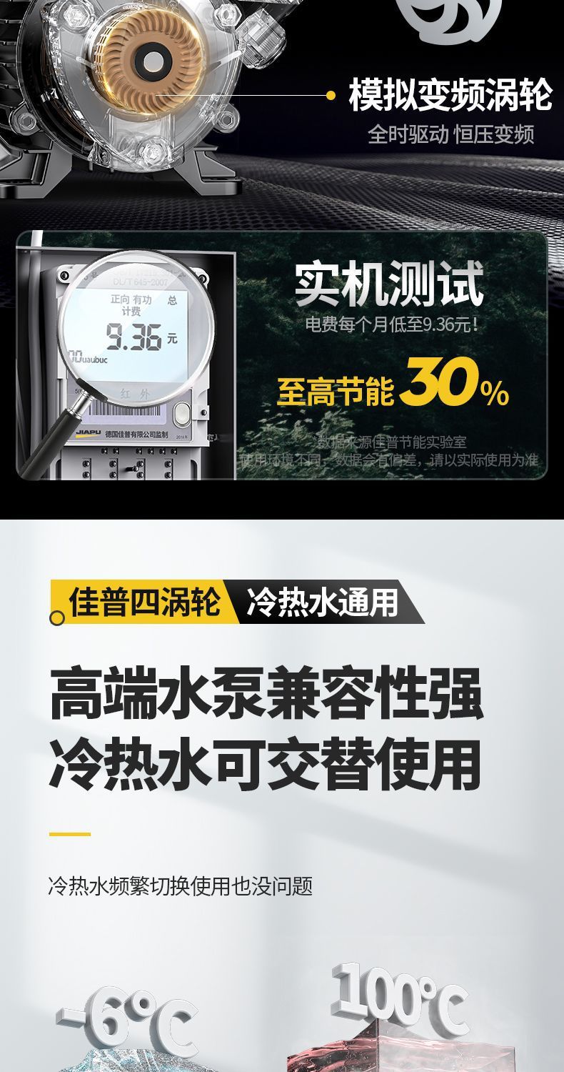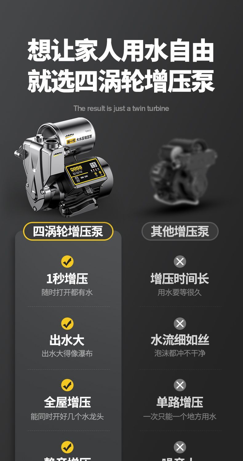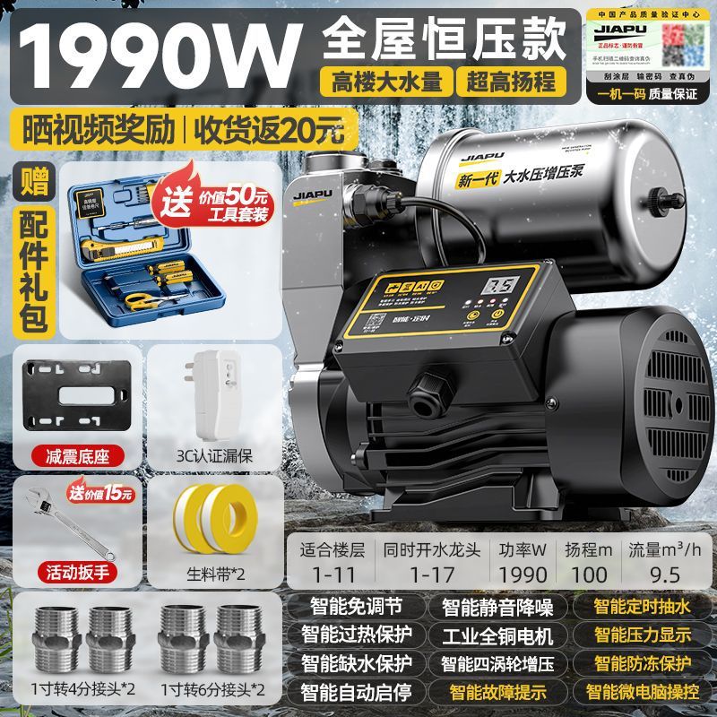 • [두꺼운 티타늄 강철 펌프] 부동액, 녹 방지 및 부식 방지, 햇빛과 비에 노출되어도 깨지지 않음 - 집 전체의 일정한 압력 모델 [1590W] 다중 파이프라인 부스팅 + 확대된 터빈