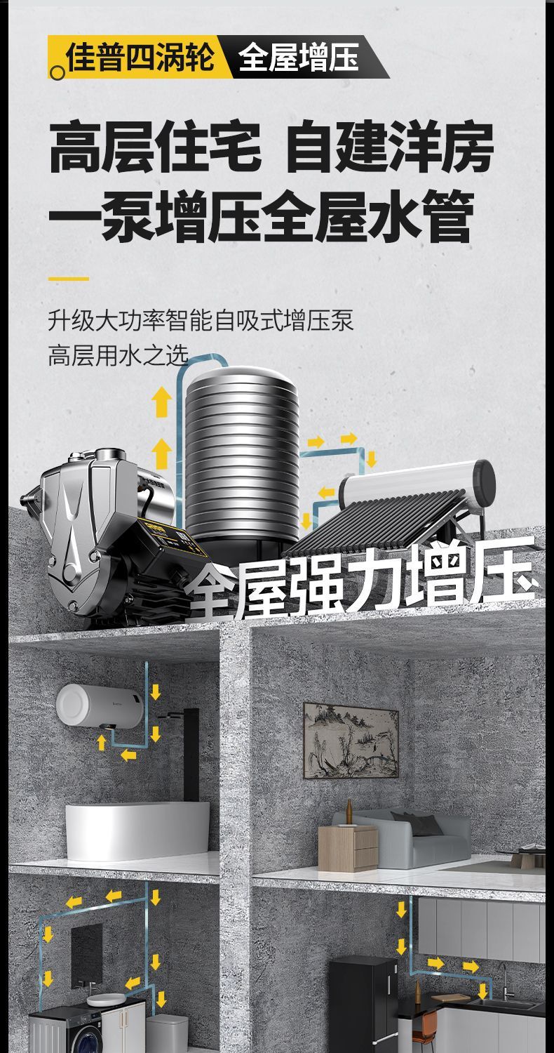 Jia Pu 부스터 펌프 220V 소형 워터 펌프 자체 흡입 펌프 가정용 완전 자동 자동 수돗물 파이프라인 가압 펌프스토어 가기