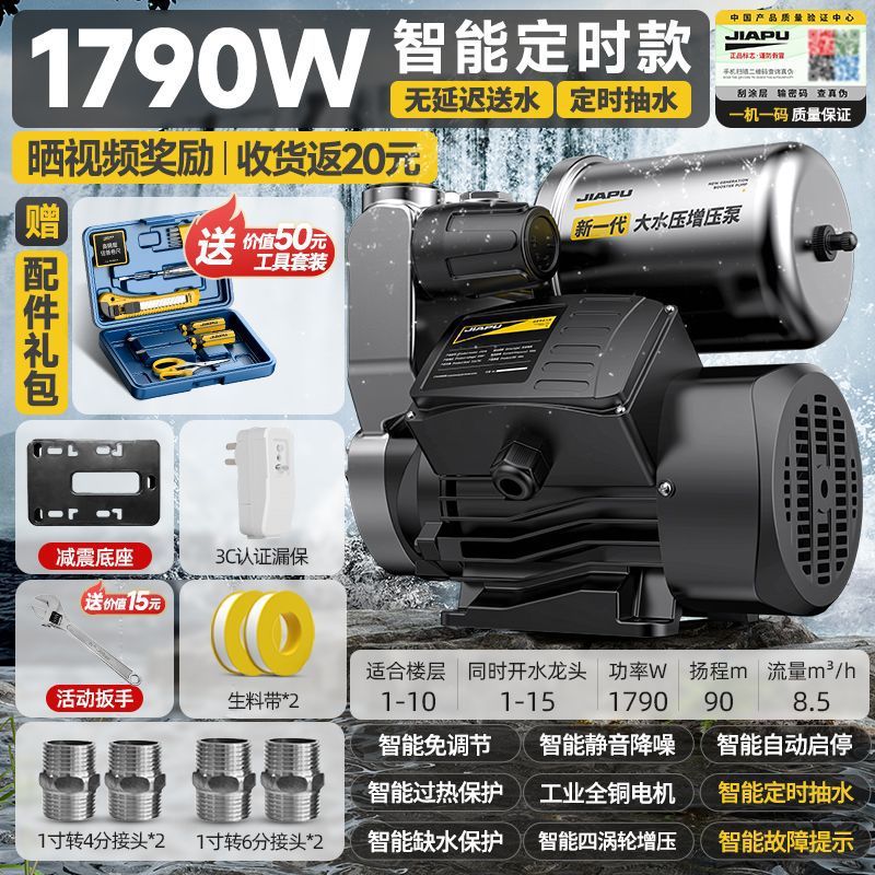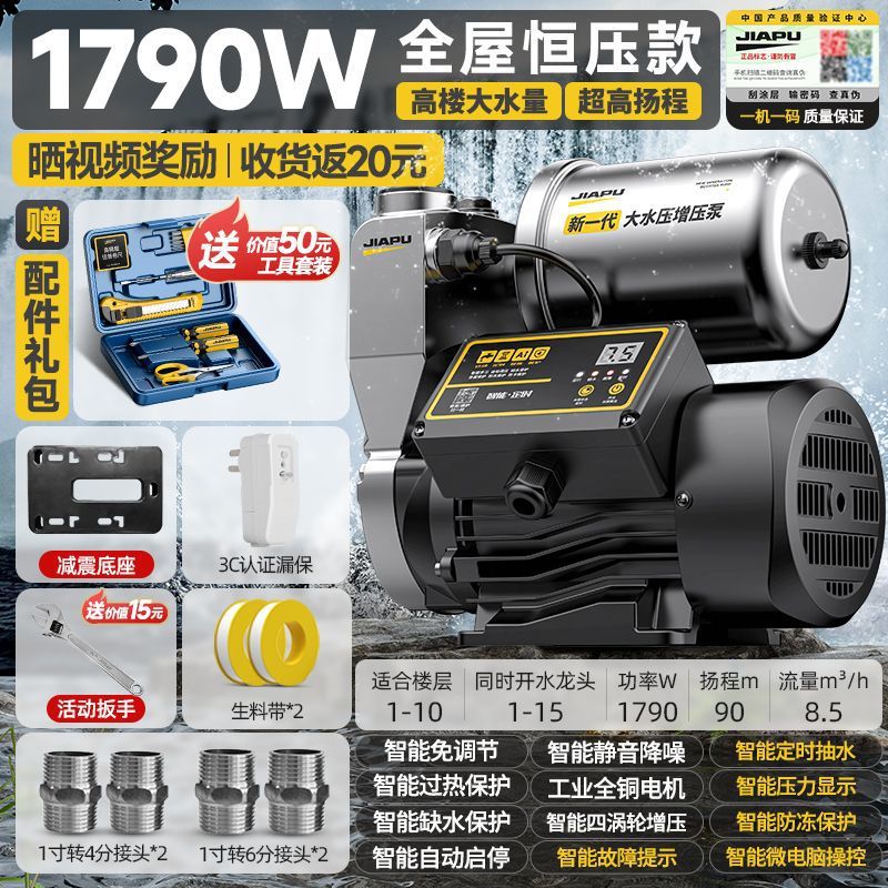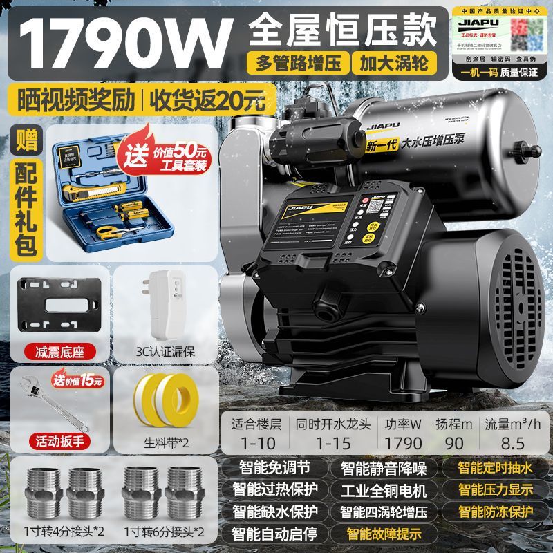 • [두꺼운 티타늄 강철 펌프] 부동액, 녹 방지 및 부식 방지, 햇빛과 비에 노출되어도 깨지지 않음 - 집 전체의 일정한 압력 모델 [1790W] 다중 파이프라인 부스팅 + 확대된 터빈