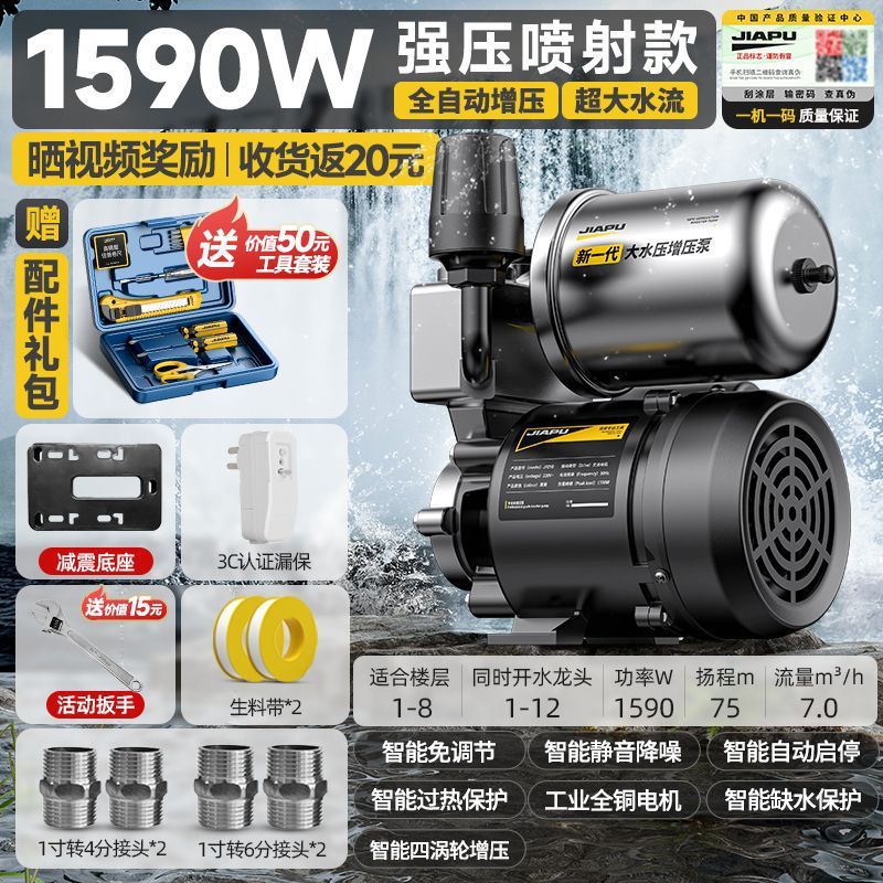 • [두꺼운 티타늄 강철 펌프] 부동액, 녹 방지 및 부식 방지, 햇빛과 비에 노출되어도 깨지지 않음 - 강압 모델 [1590W] 완전 자동 부스팅 + 물 흐름