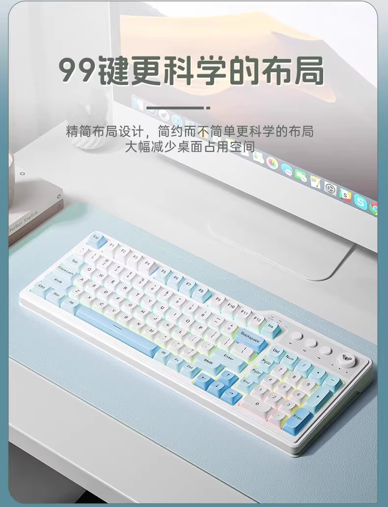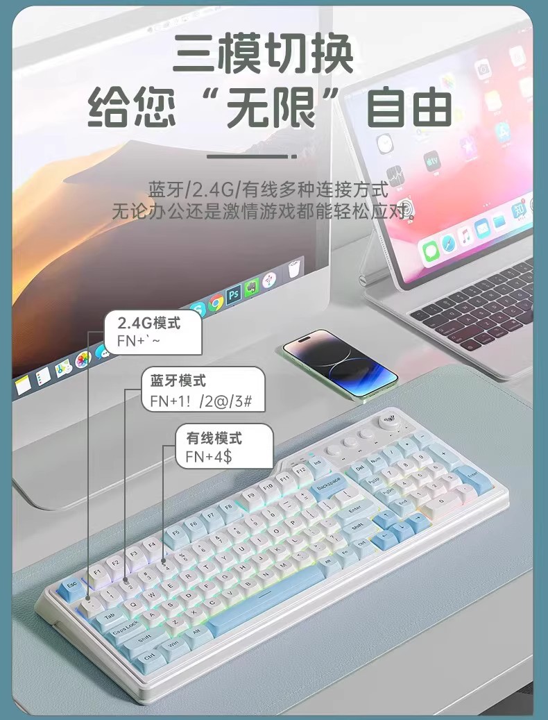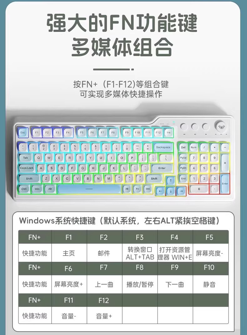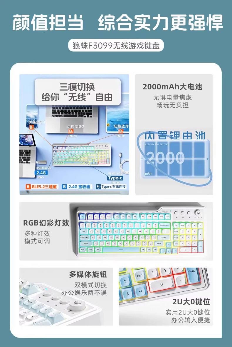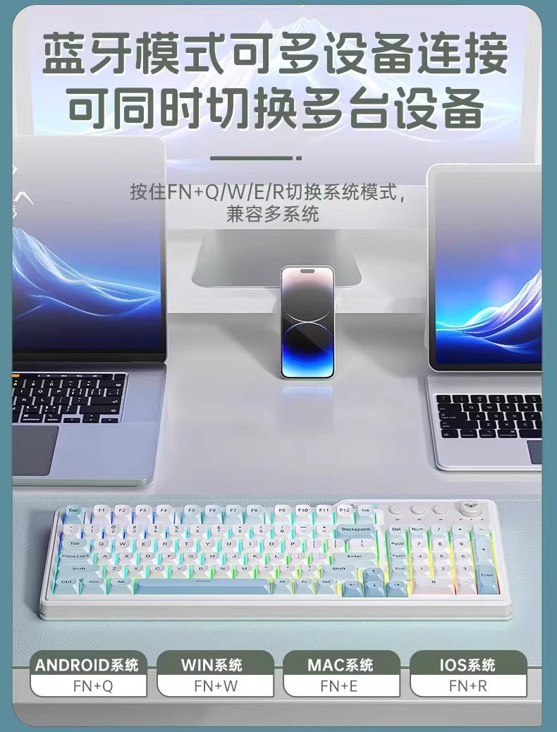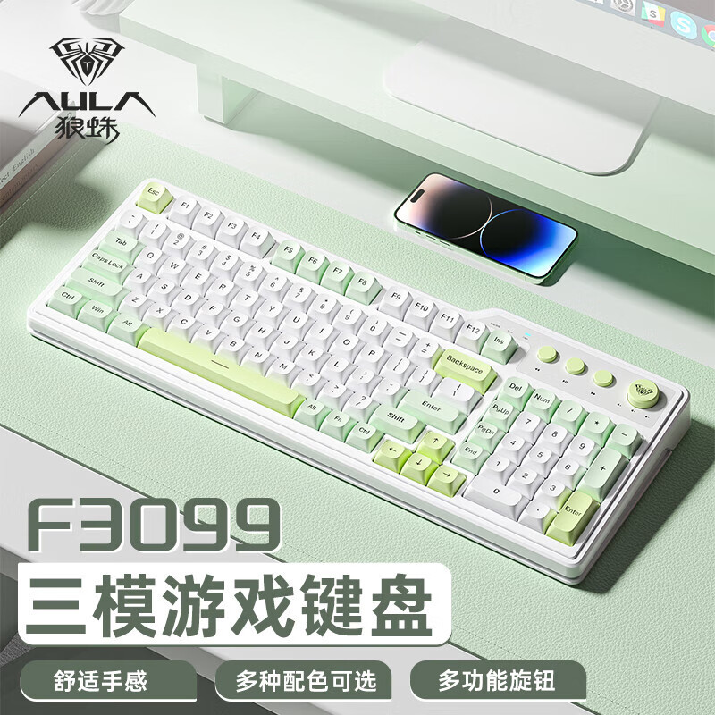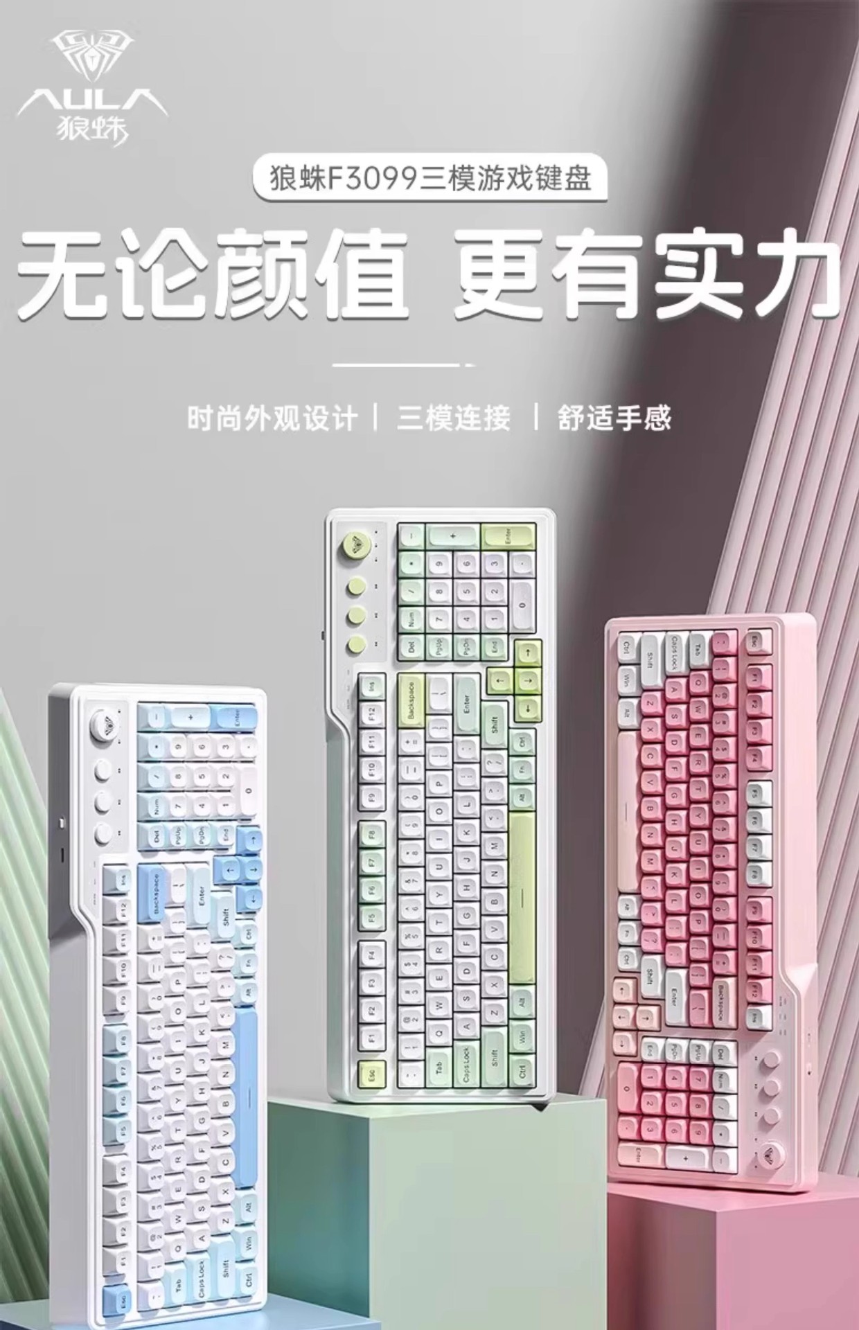 AULA/Wolf Spider F3099 무선 3 모드 오피스 라이트 터치 키보드 Bluetooth 게임용 데스크탑 노트북 크로스보더스토어 가기
