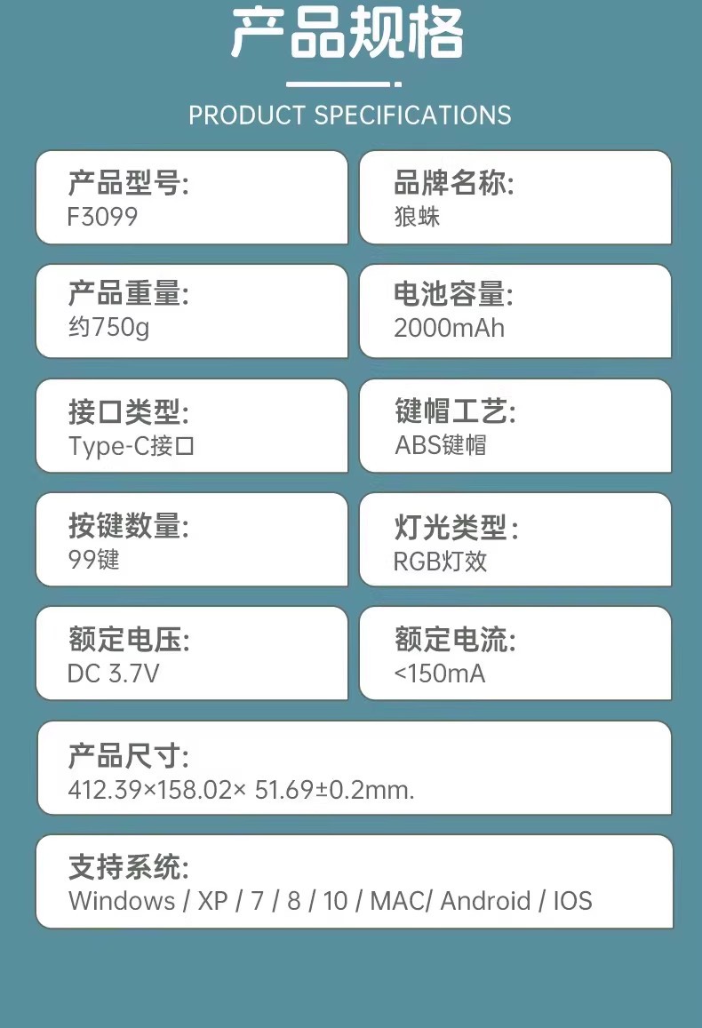 AULA/Wolf Spider F3099 무선 3 모드 오피스 라이트 터치 키보드 Bluetooth 게임용 데스크탑 노트북 크로스보더