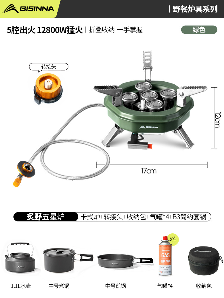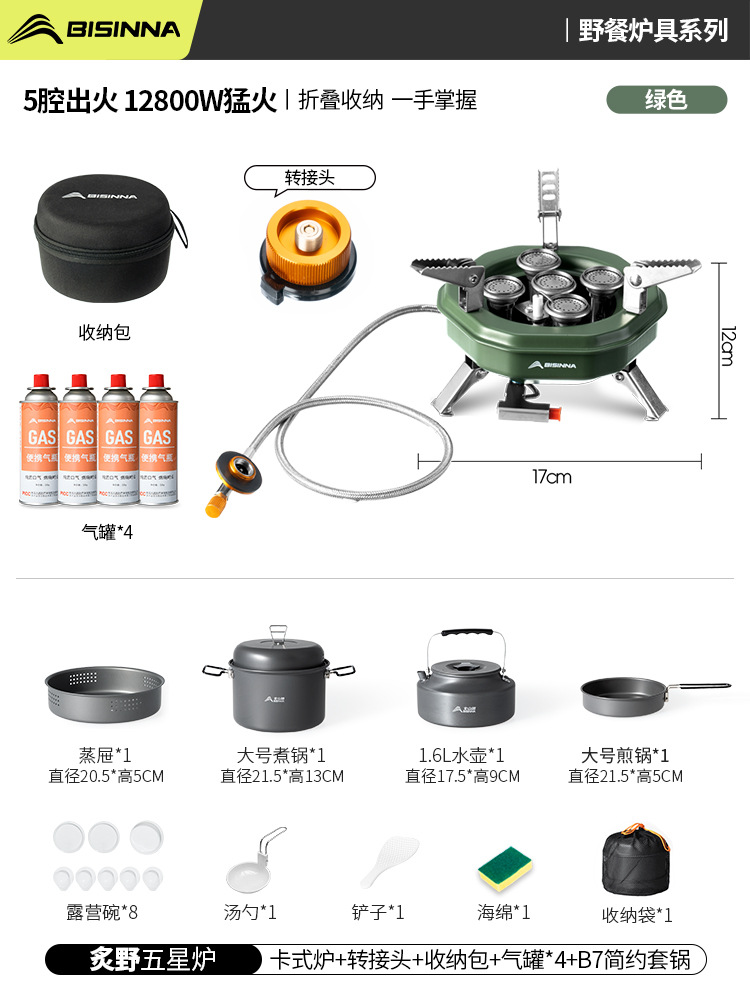 • 녹색: 5코어 강한 불 + 가스 탱크 * 4 + 화창한 날 보관 가방