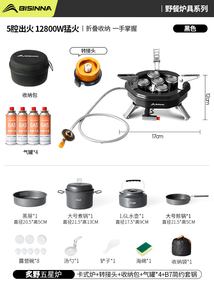 • 블랙: 5심 불 + 가스탱크*4 + 4피스 냄비 세트
