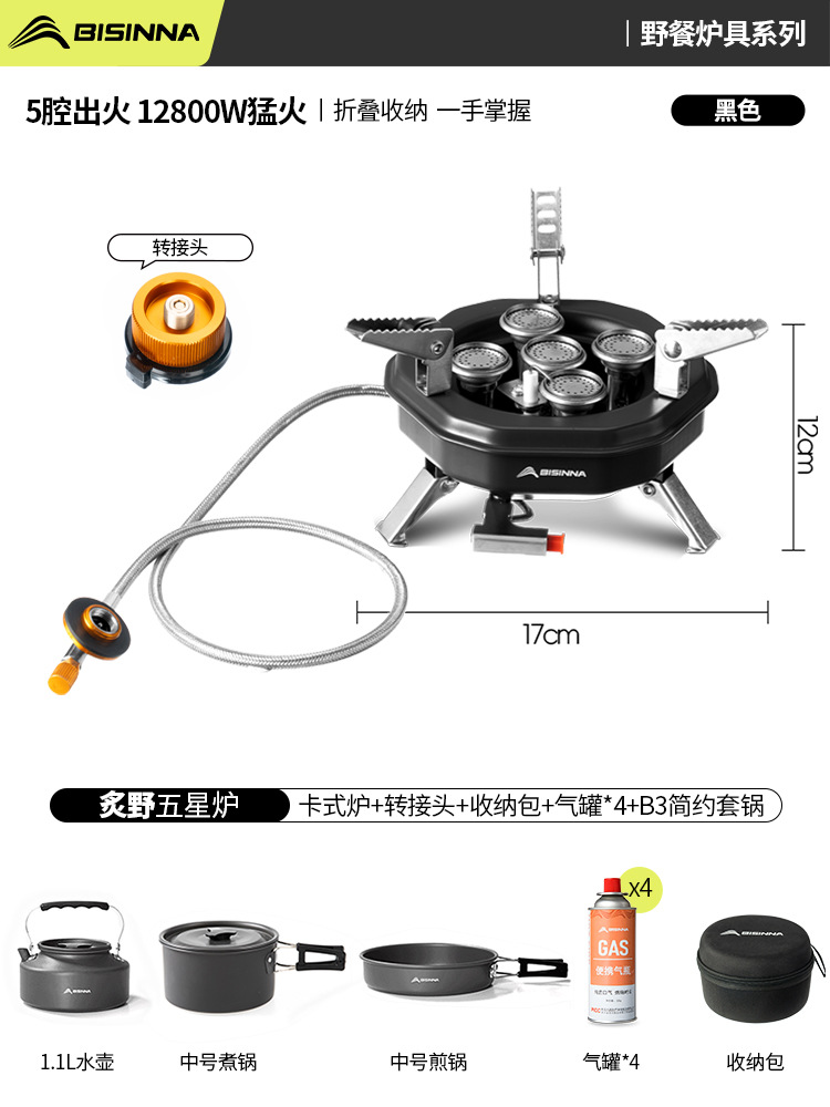 • 블랙: 5심 불 + 가스탱크*4 + 3피스 냄비 세트