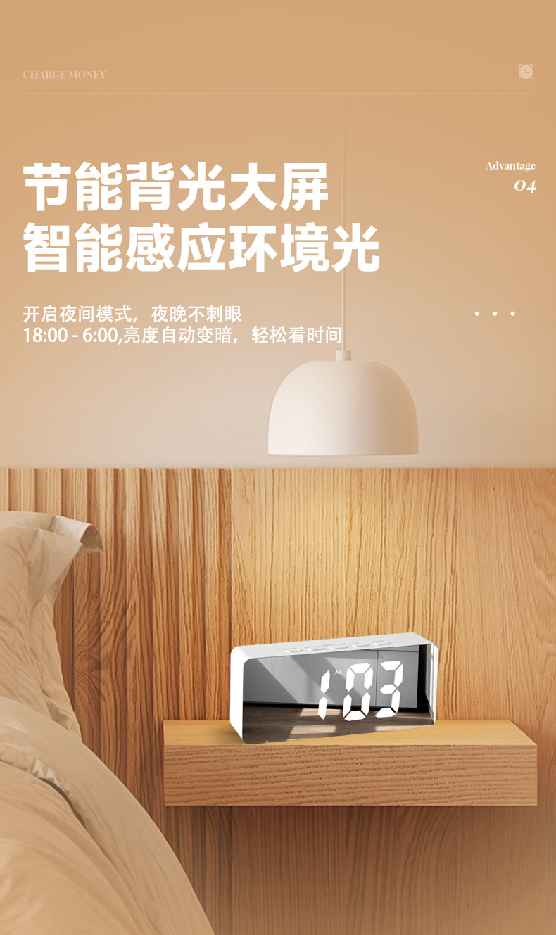 일본식 간단한 화장 거울 대형 글꼴 알람 시계 크리 에이 티브 달력 온도 LED 전자 시계 배터리 플러그인 이중 용도