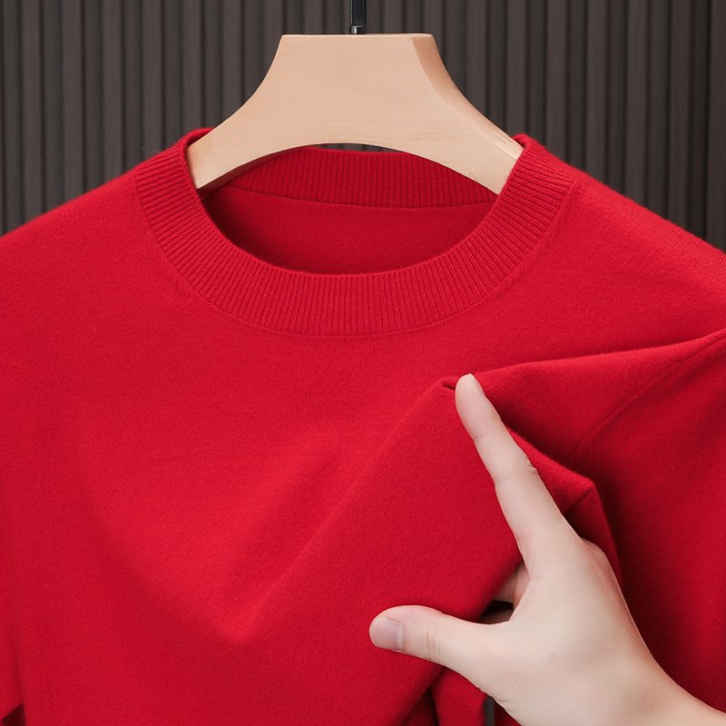 Douyin 인기 안티 필링 라운드 넥 스웨터 얇은 솔리드 컬러 캐주얼 남성 탑 베이스 레이어