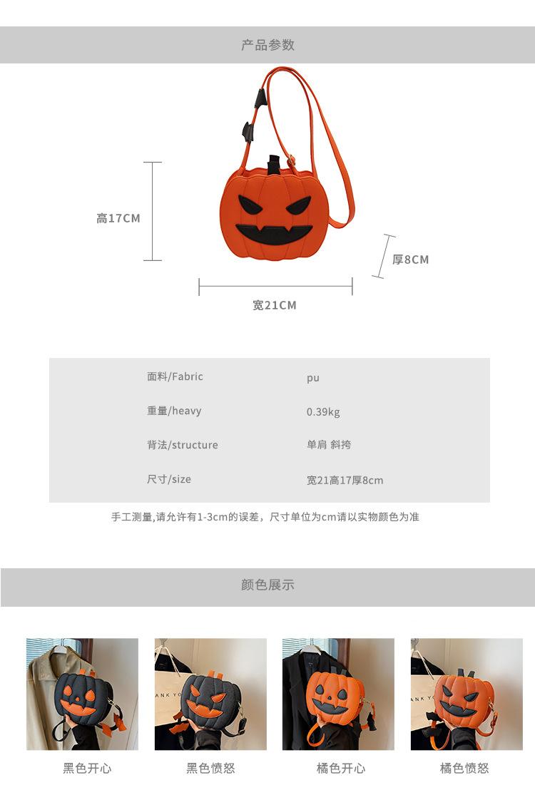재미있는 호박 가방 유럽과 미국의 할로윈 가방 여성 가방 틈새 디자인 세련되고 절묘한 귀여운 싱글 숄더 크로스 바디 여성 가방스토어 가기