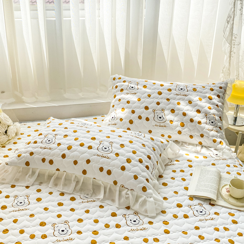 • 폴카 도트 베어 프린트 퀼팅 베갯잇