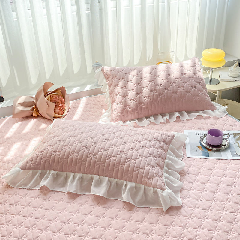 • 레이스 스타일 퀼팅 베갯잇 - 피치 핑크