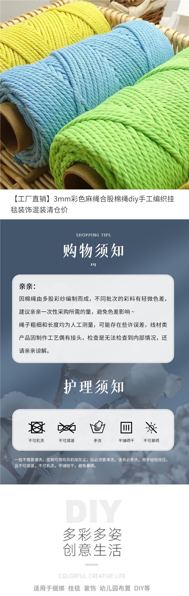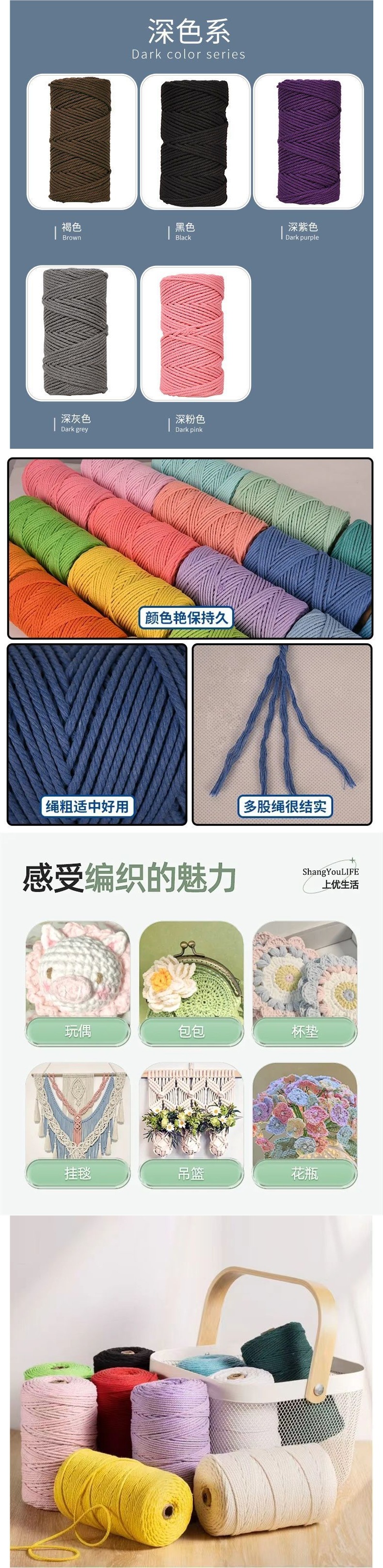 뜨거운 판매 4mm 컬러 대마 로프 합체면 로프 diy 손으로 짠 태피스트리 장식 로프 혼합 도매 가격스토어 가기