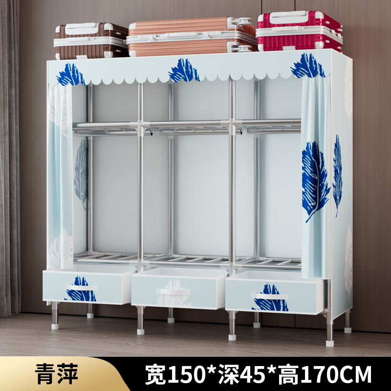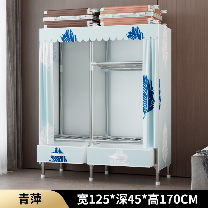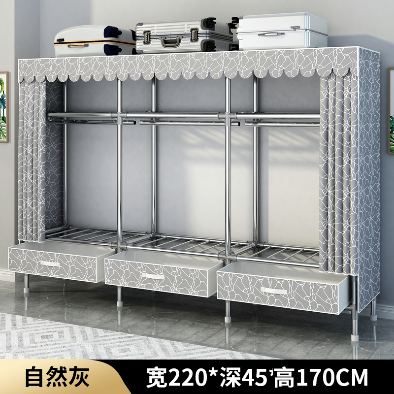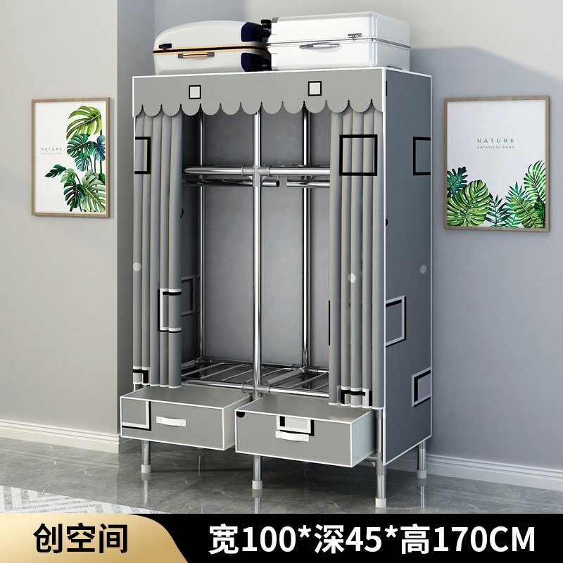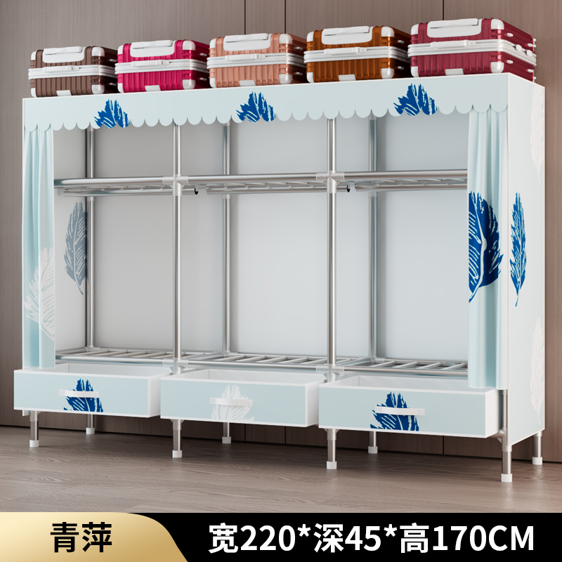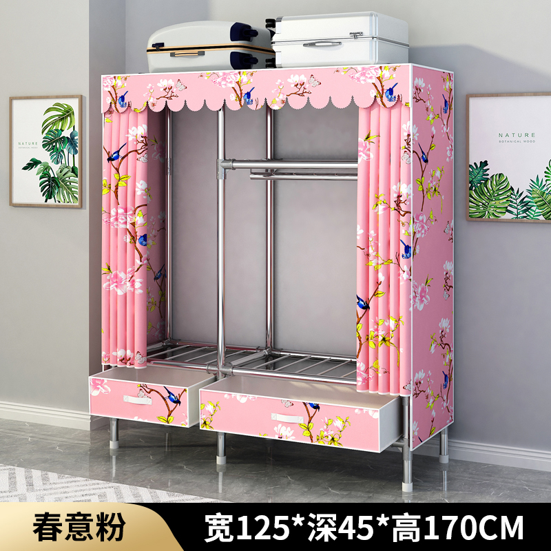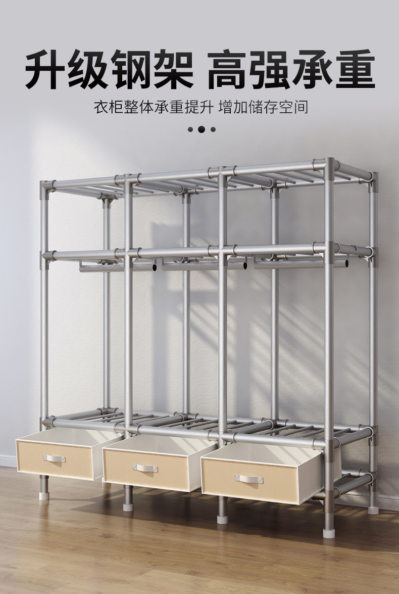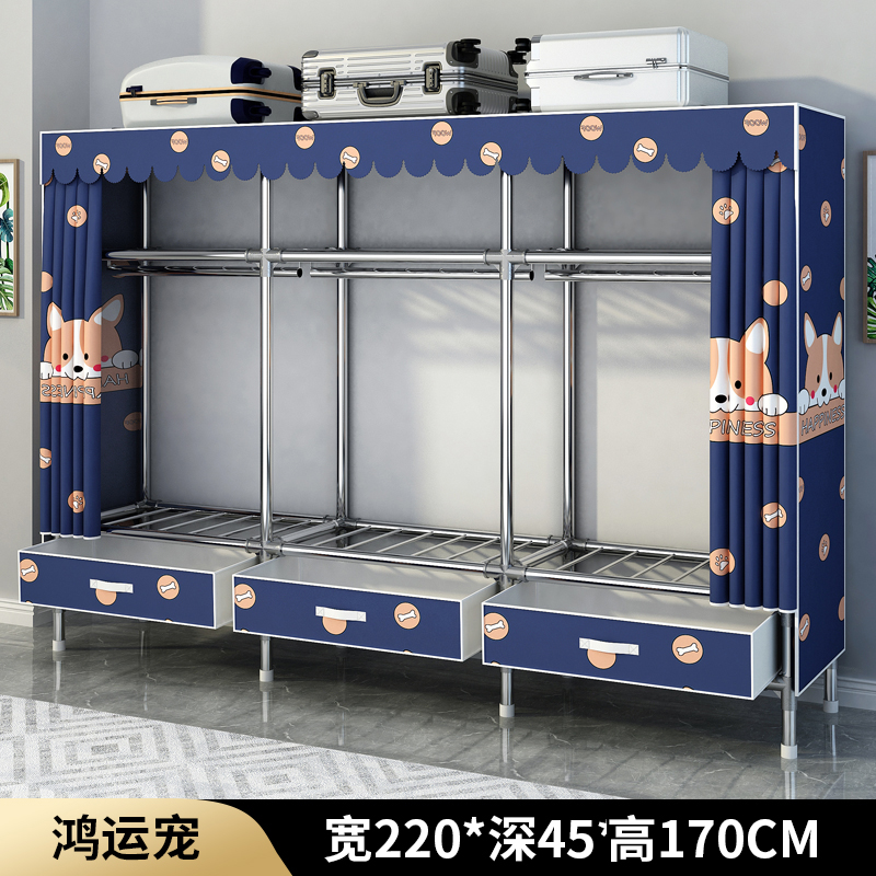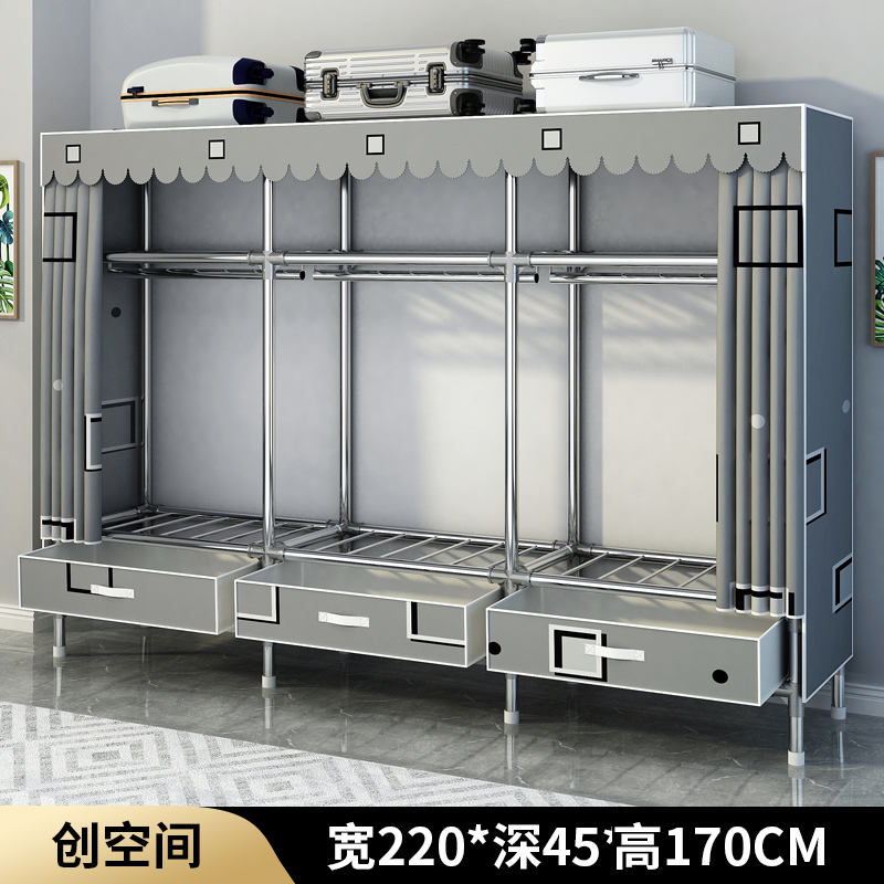 간단한 옷장 옥스포드 천 두꺼운 천 옷장 강철 파이프 두꺼운 강화 전체 강철 프레임 임대 주택 보관 옷장스토어 가기