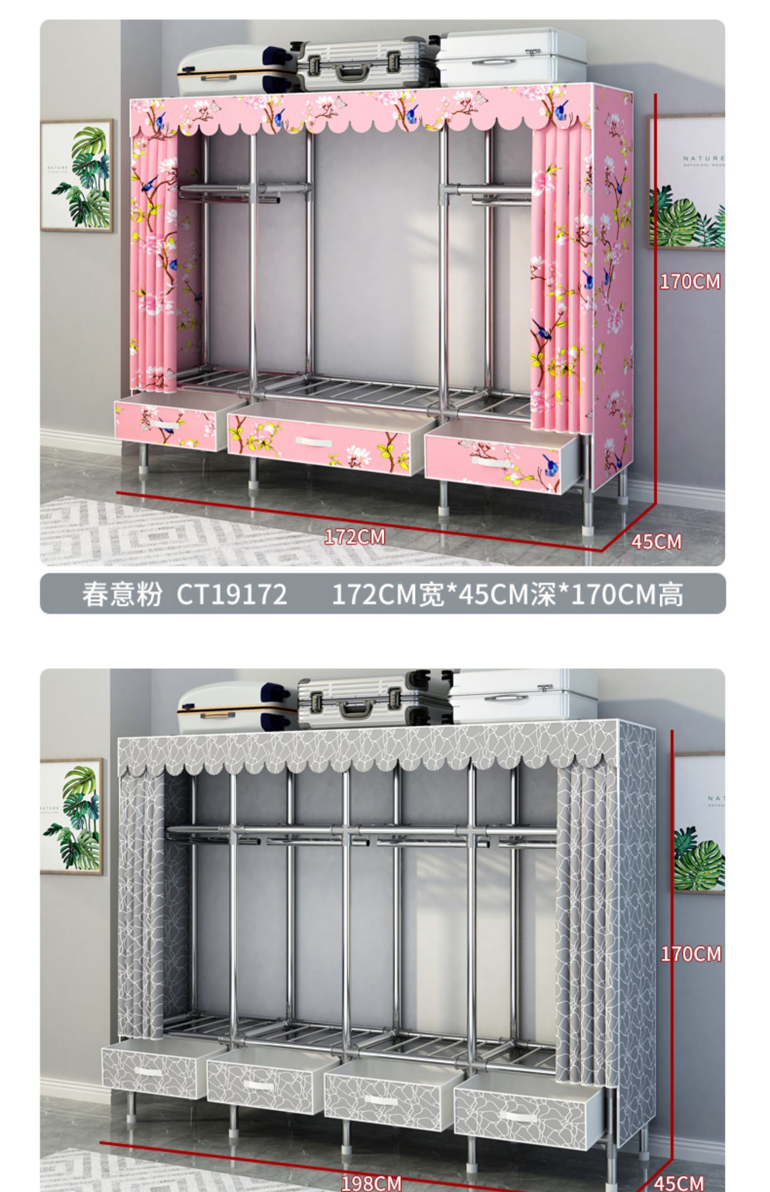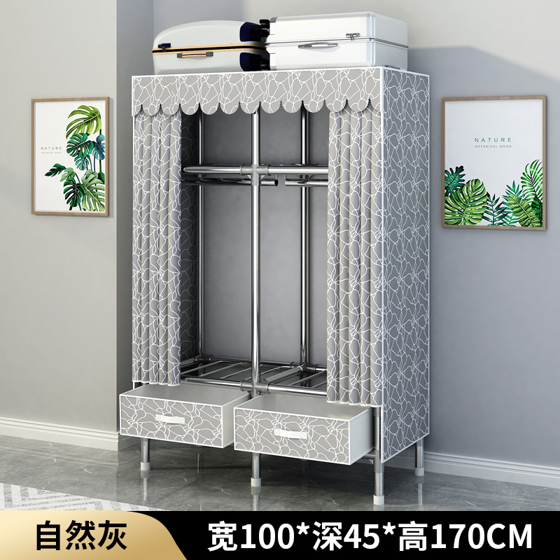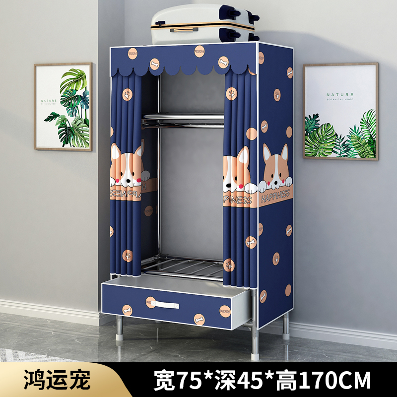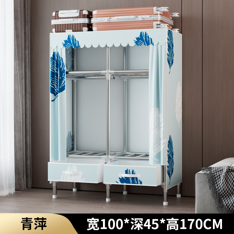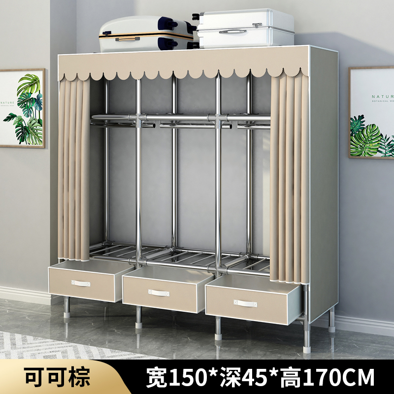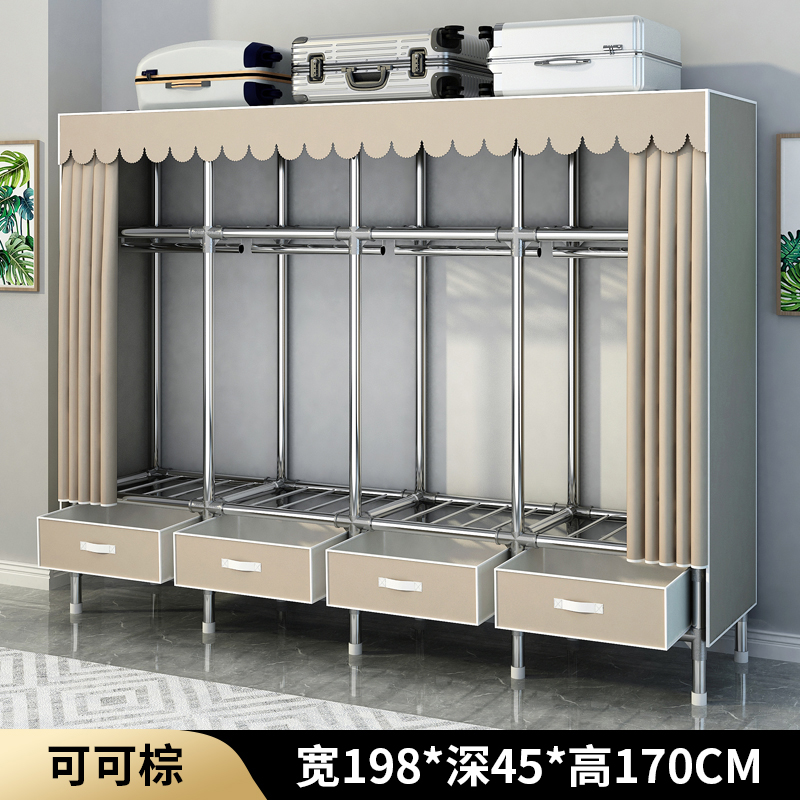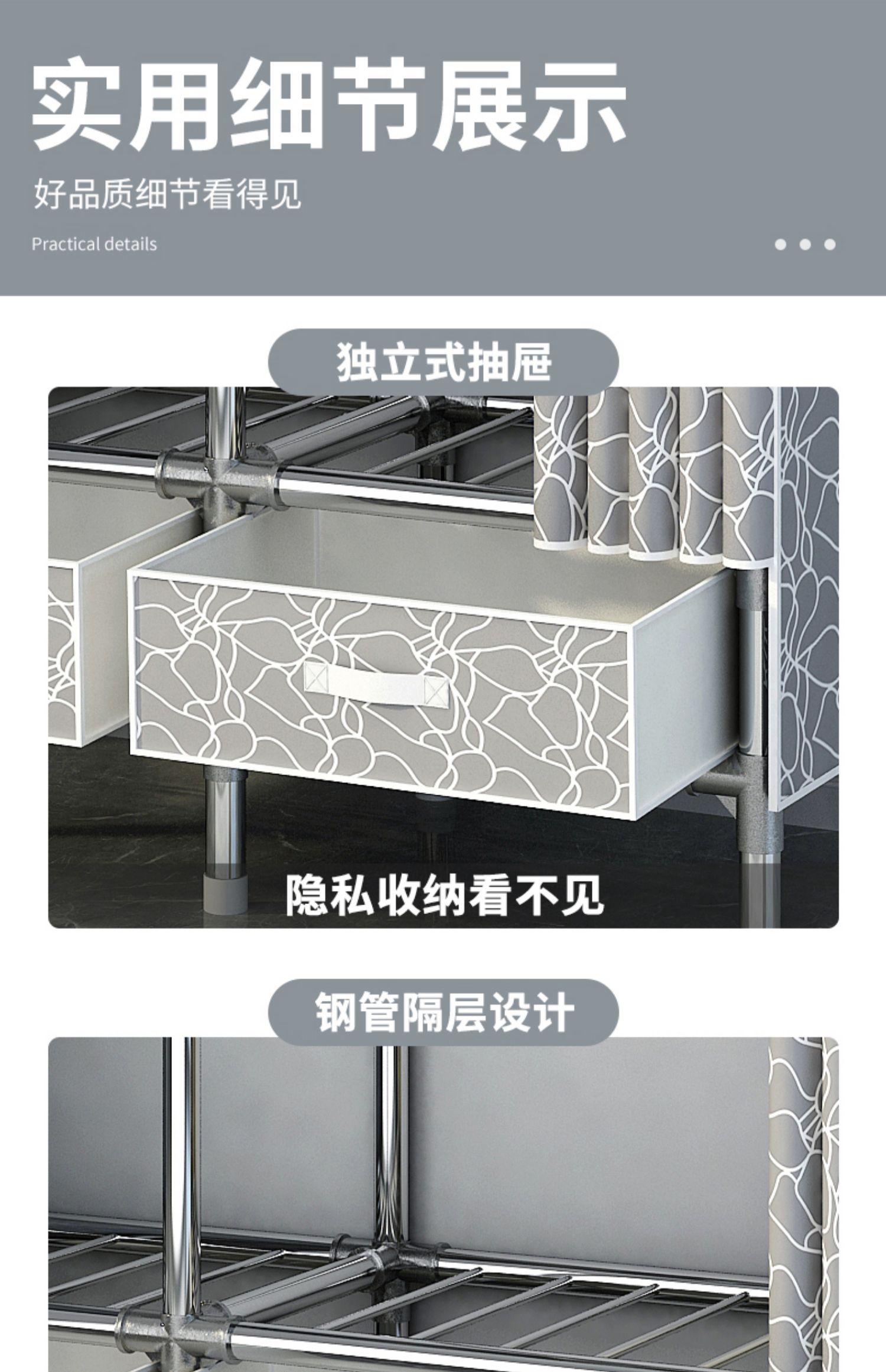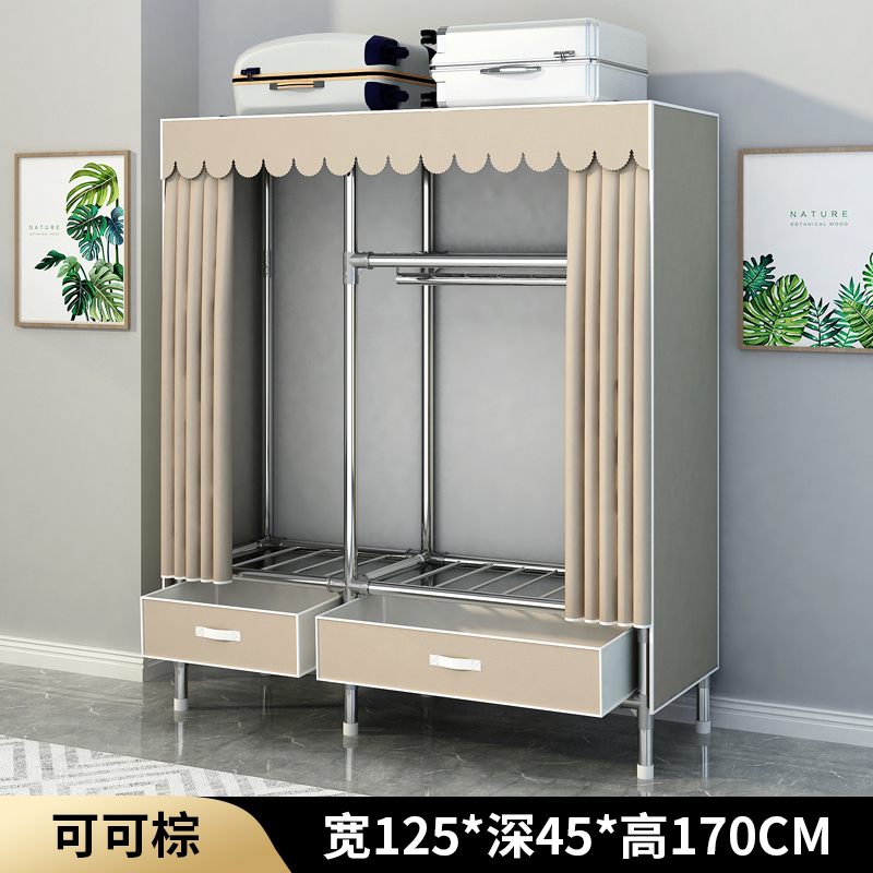 간단한 옷장 옥스포드 천 두꺼운 천 옷장 강철 파이프 두꺼운 강화 전체 강철 프레임 임대 주택 보관 옷장스토어 가기