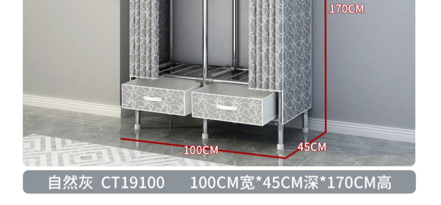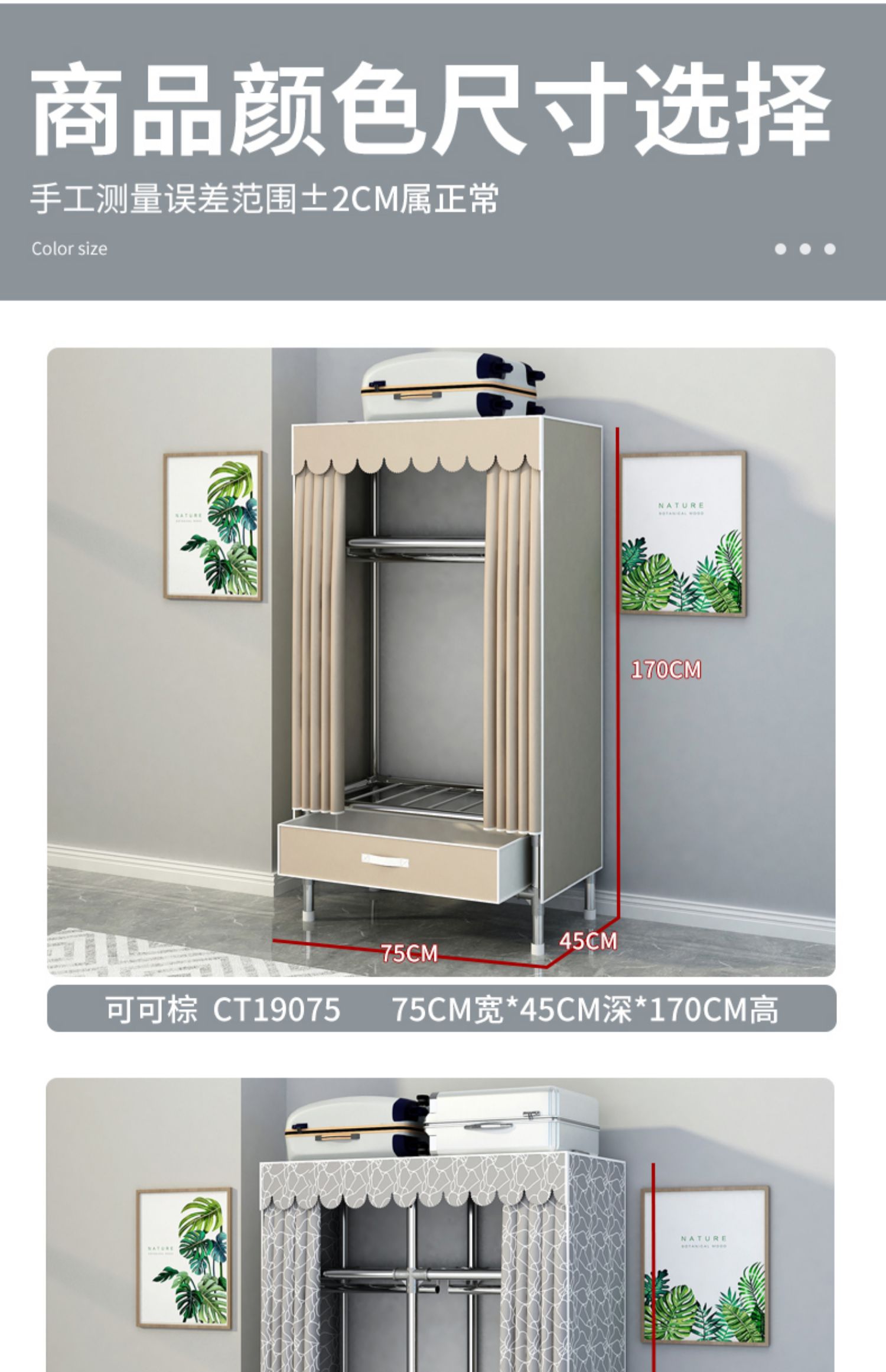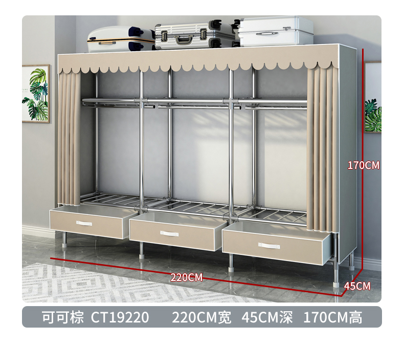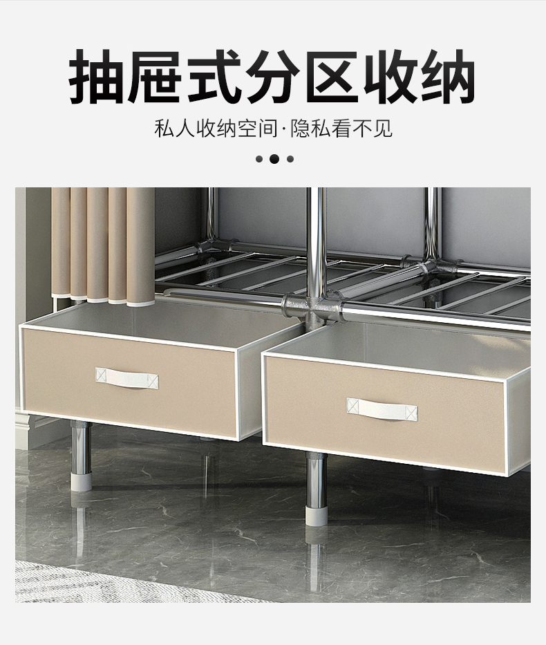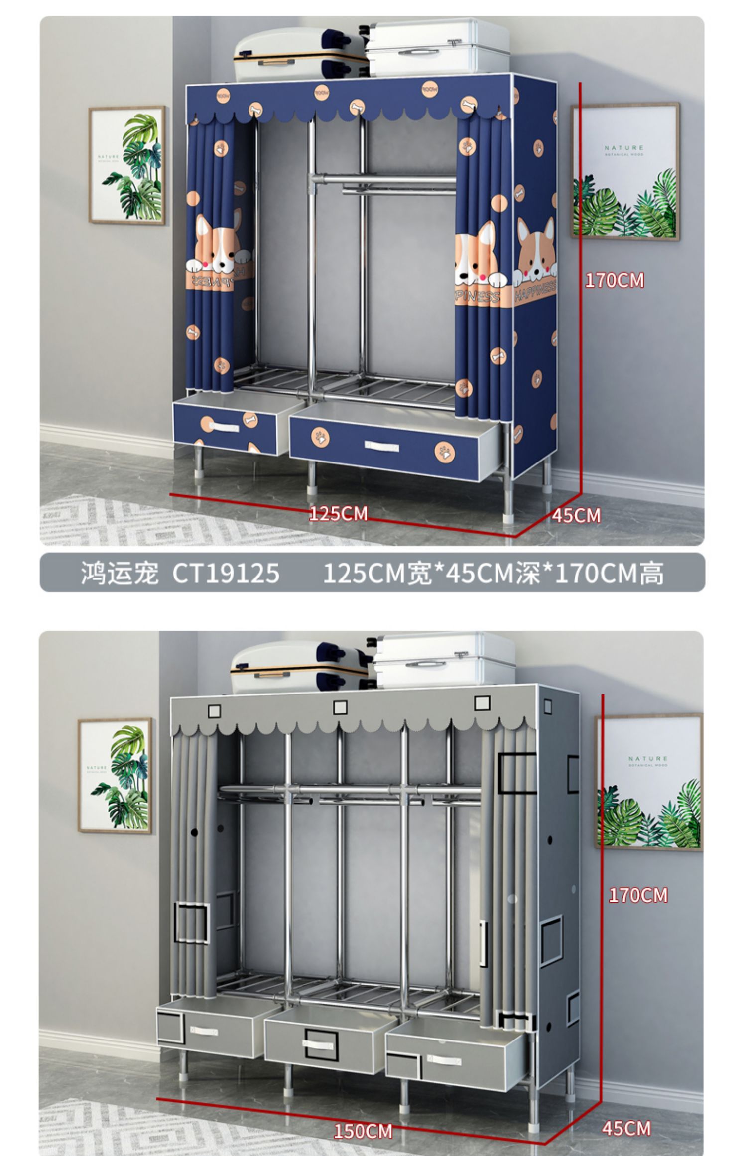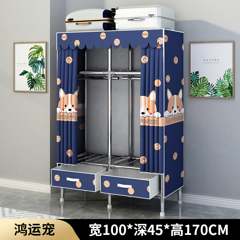간단한 옷장 옥스포드 천 두꺼운 천 옷장 강철 파이프 두꺼운 강화 전체 강철 프레임 임대 주택 보관 옷장스토어 가기