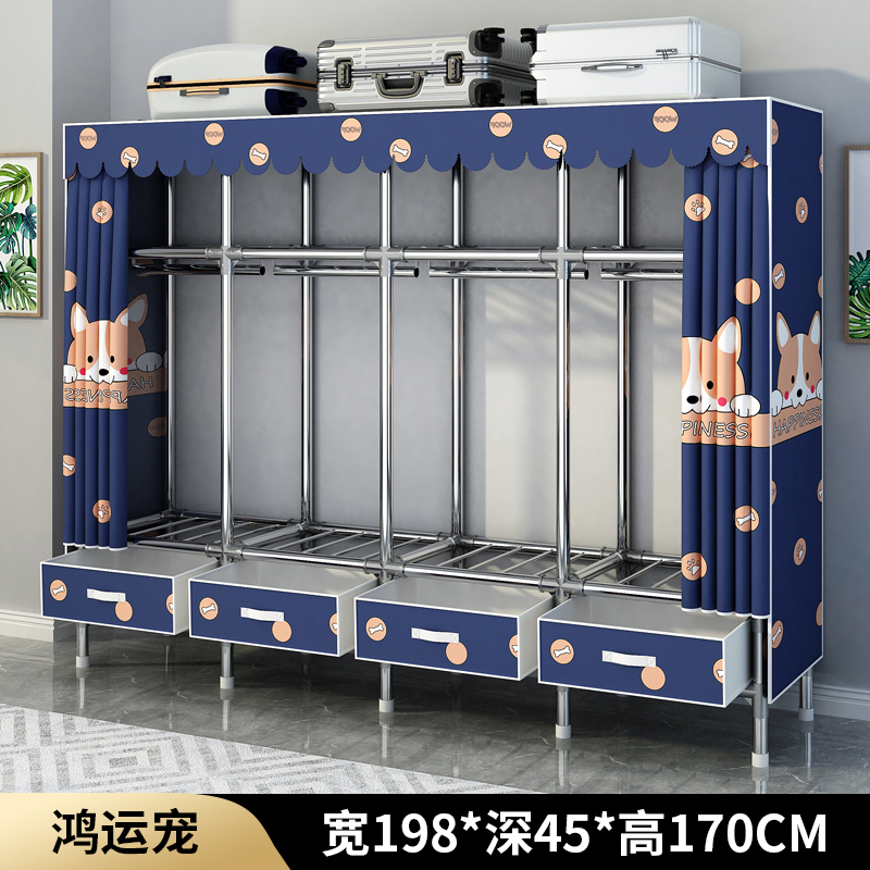 간단한 옷장 옥스포드 천 두꺼운 천 옷장 강철 파이프 두꺼운 강화 전체 강철 프레임 임대 주택 보관 옷장