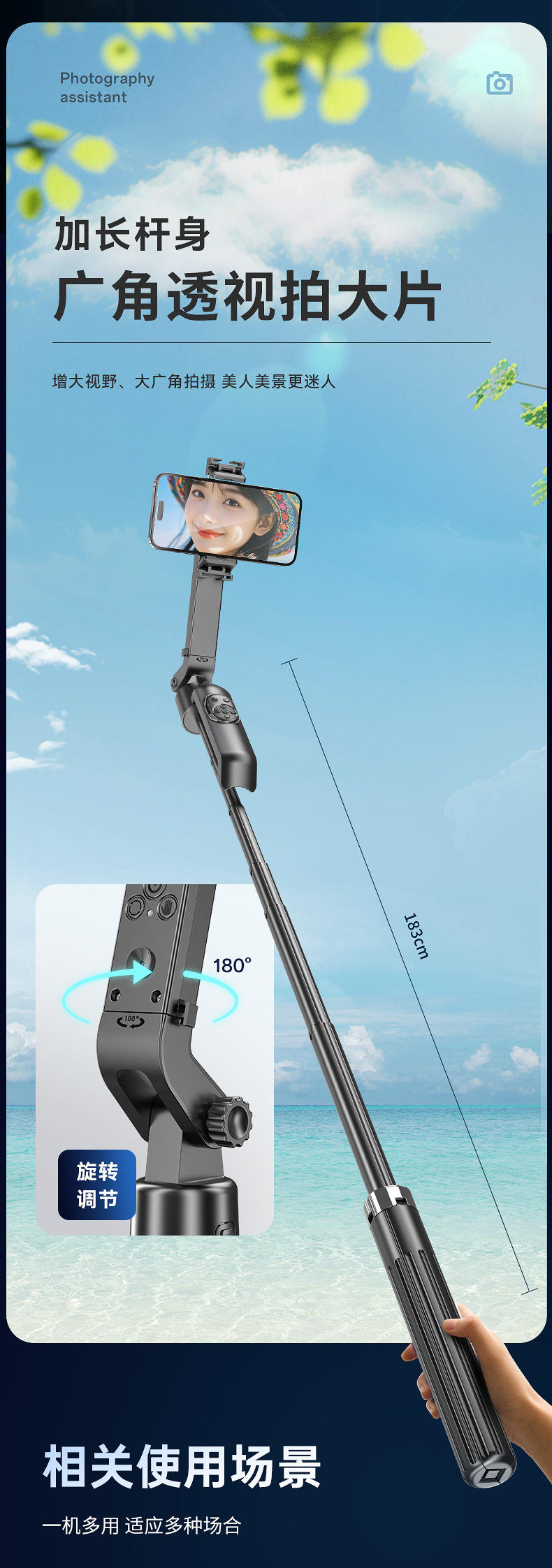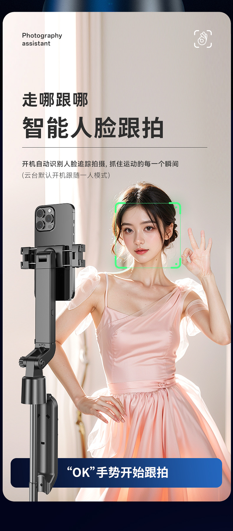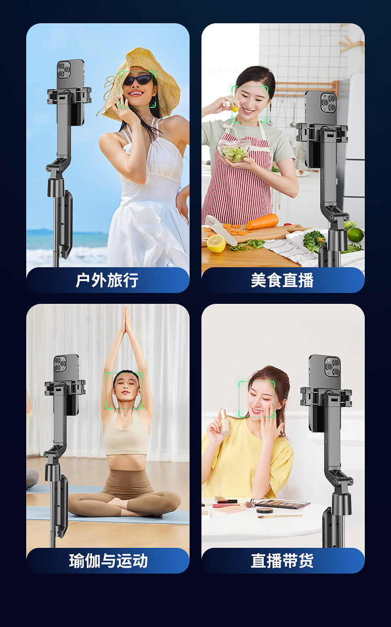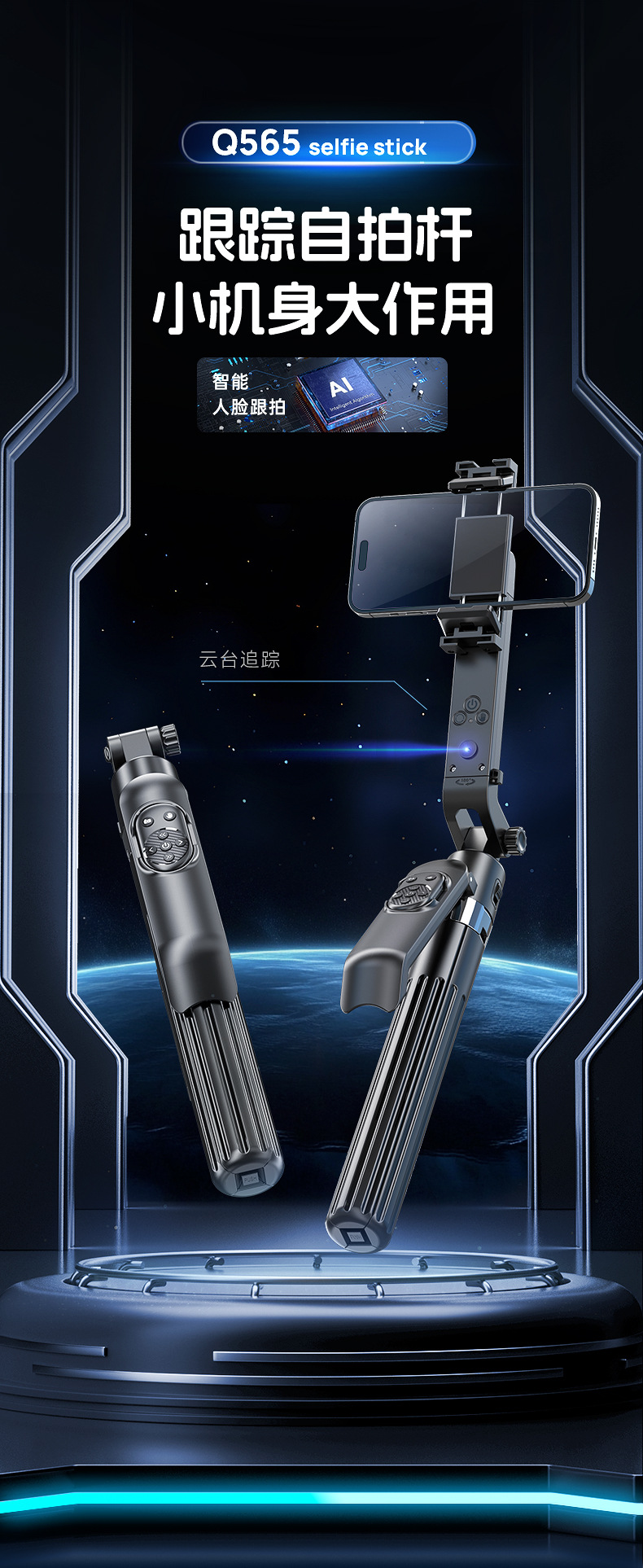 새로운 Q565 스마트 얼굴 추적 짐벌 손떨림 방지 아티팩트 휴대폰 셀카봉 1.9m 바디 삼각대스토어 가기