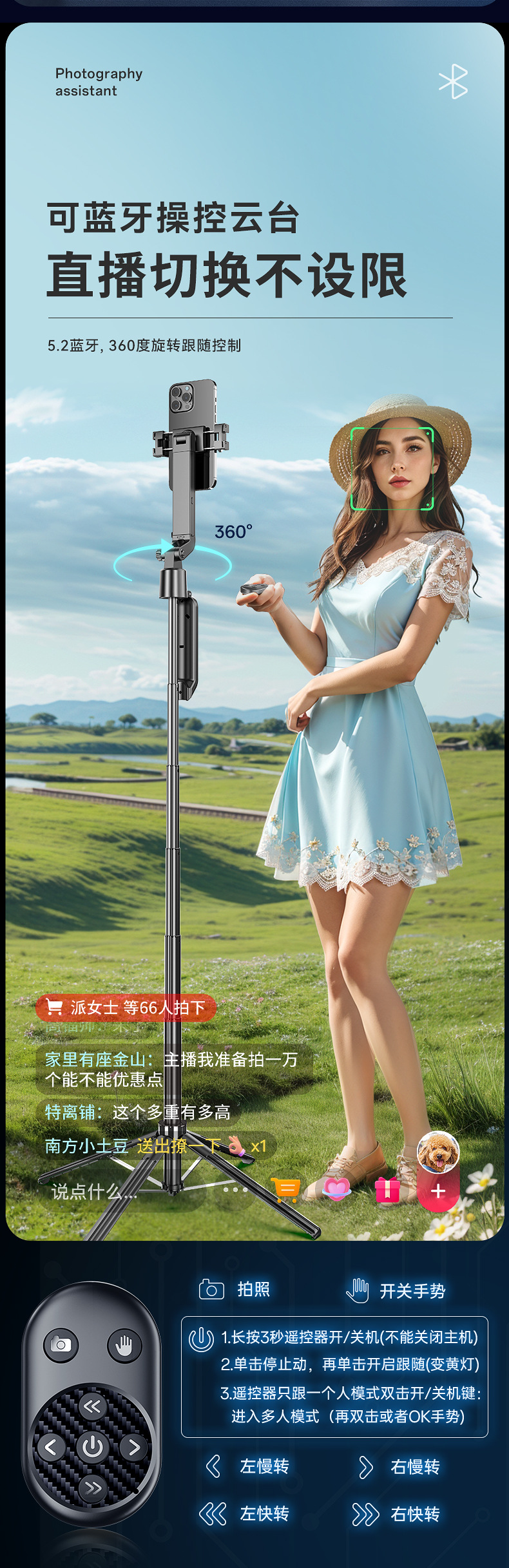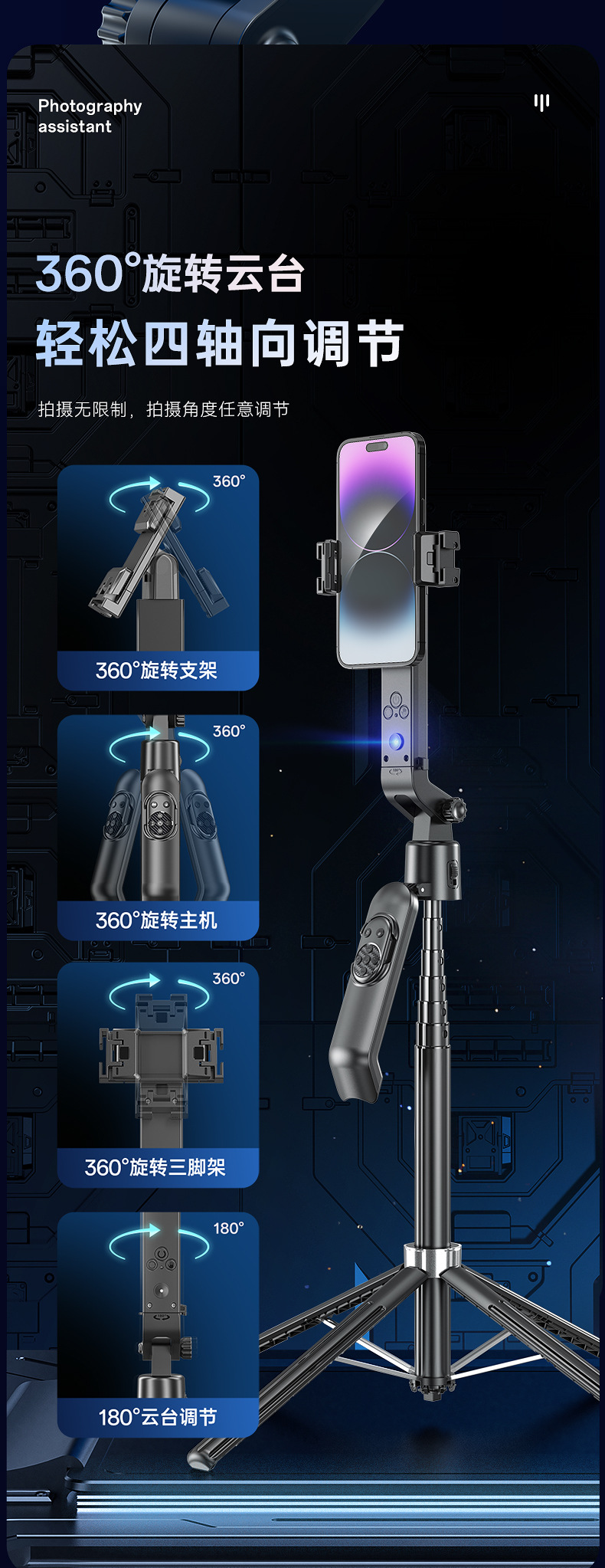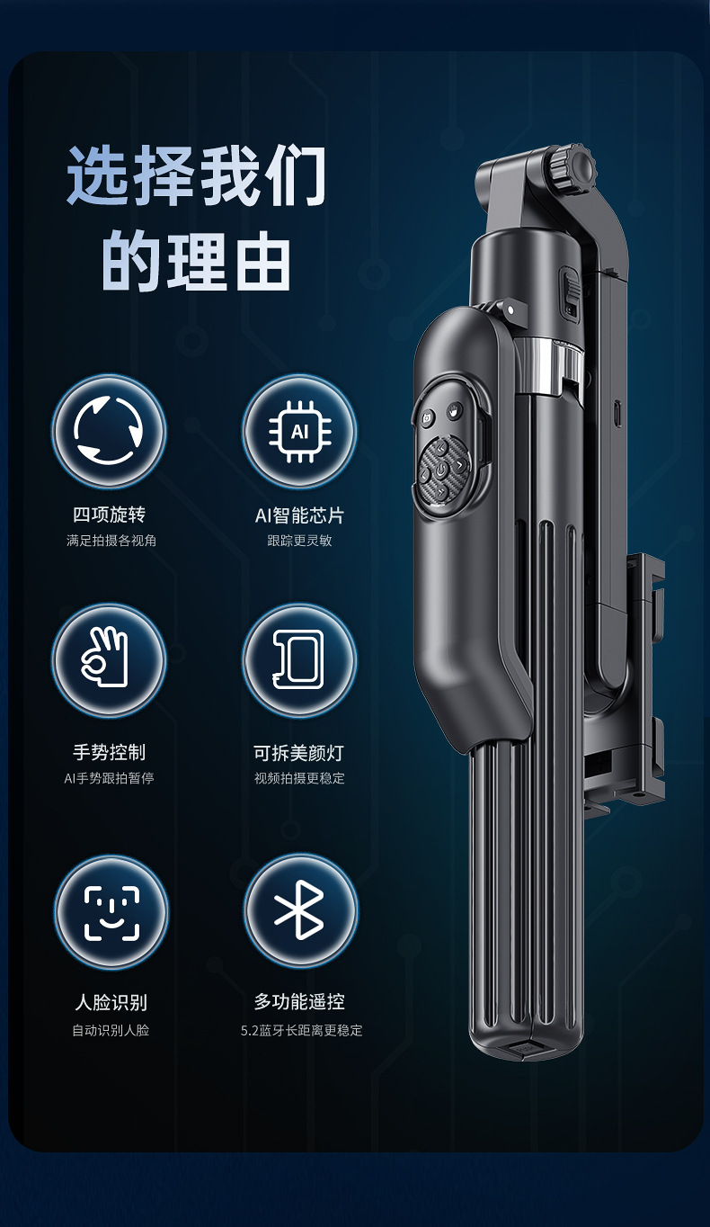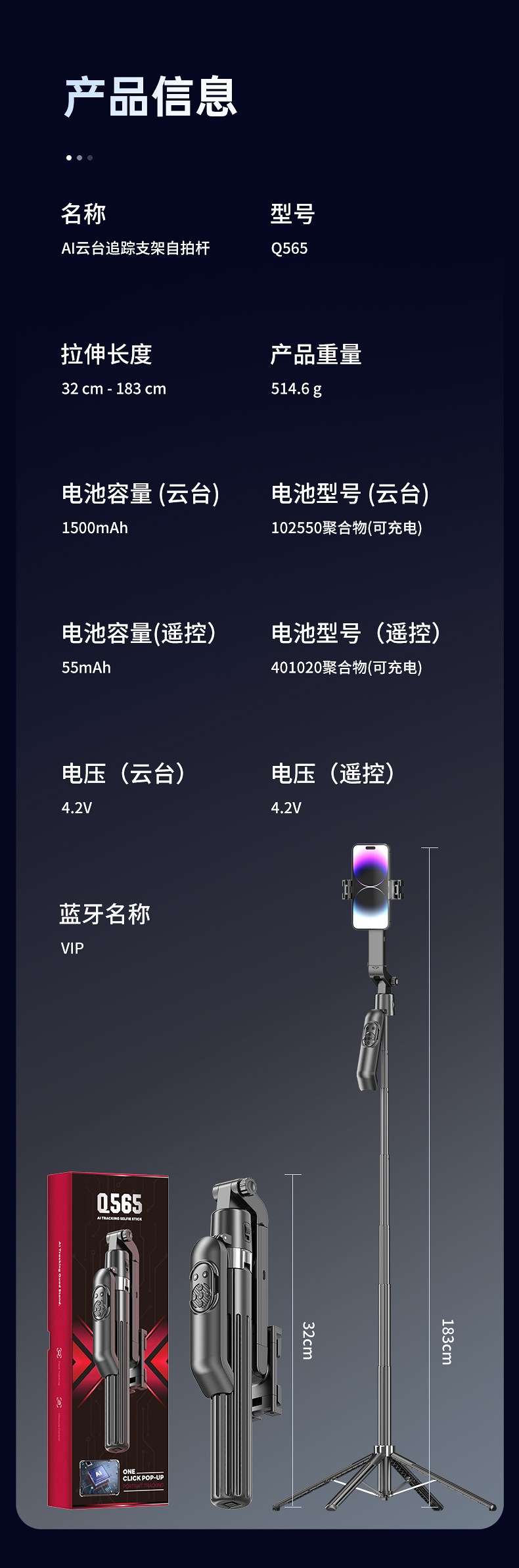 새로운 Q565 스마트 얼굴 추적 짐벌 손떨림 방지 아티팩트 휴대폰 셀카봉 1.9m 바디 삼각대