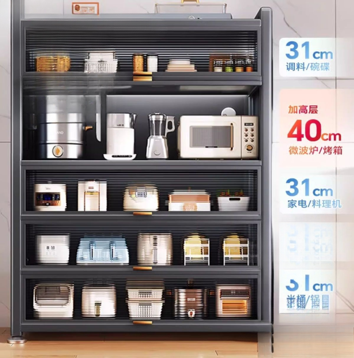 새로운 가정용 주방 캐비닛 보관 캐비닛 바닥에서 천장까지의 다층 이동식 찬장(바퀴 포함) 주방 캐비닛 보관 랙 없음