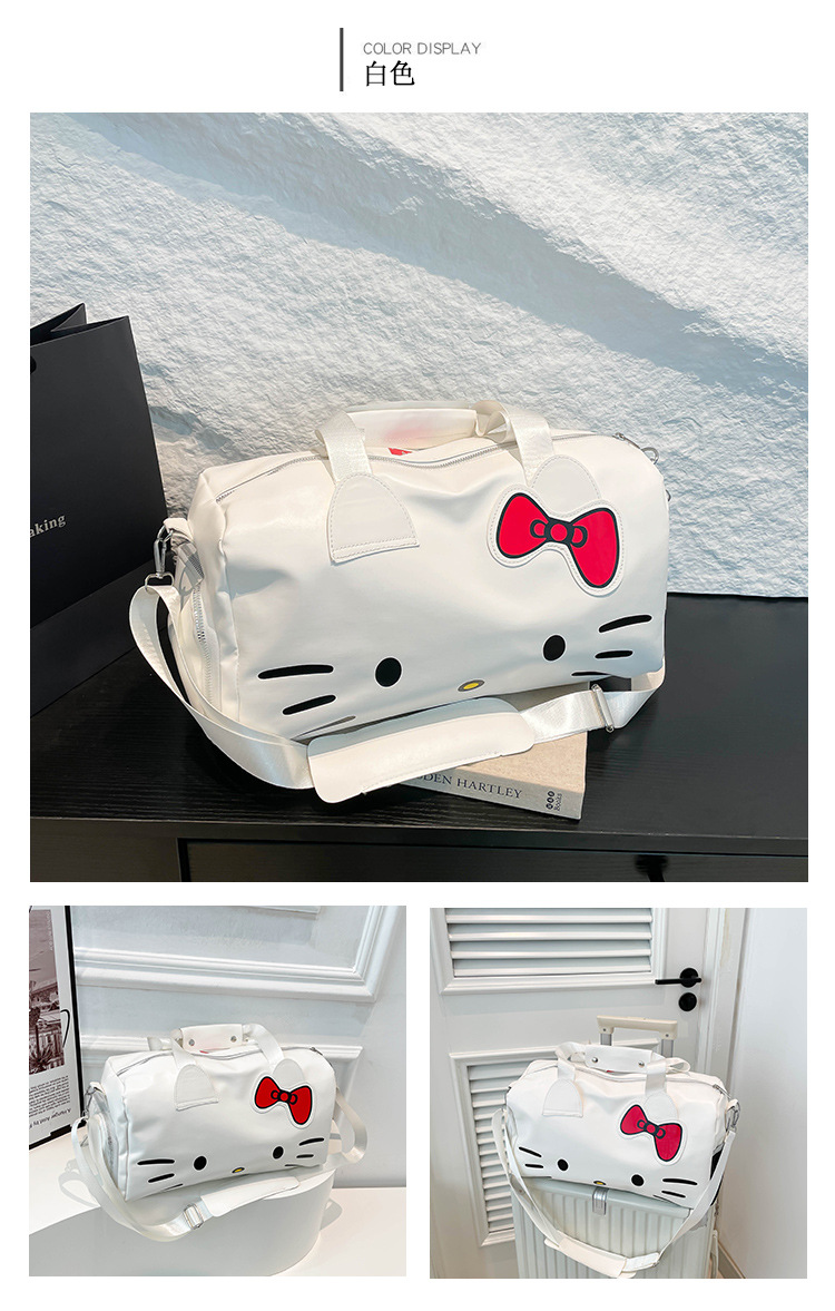 HelloKitty 만화 귀여운 대형 가방 어깨 활 헬로 키티 휴대용 피트니스 가방 크로스 바디 여행 가방스토어 가기