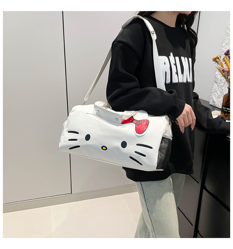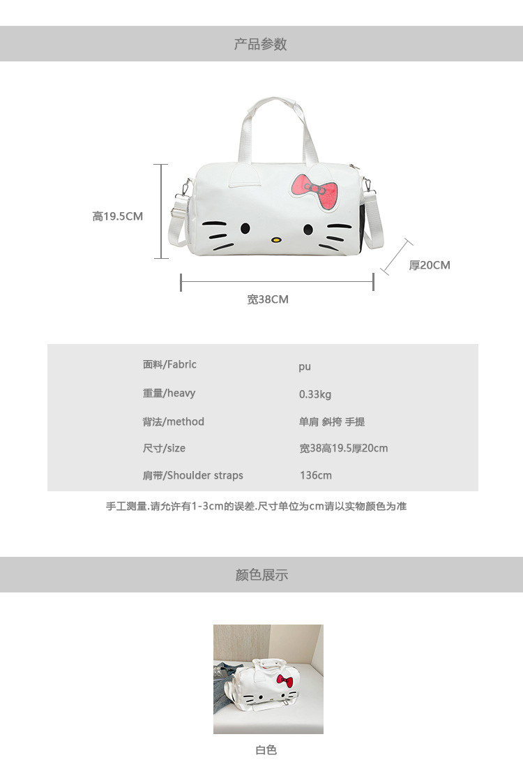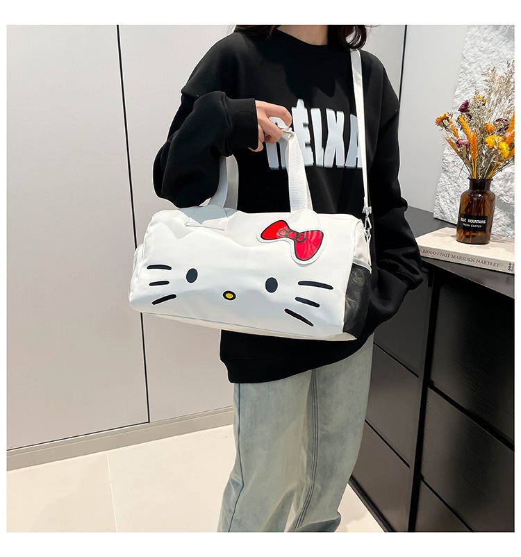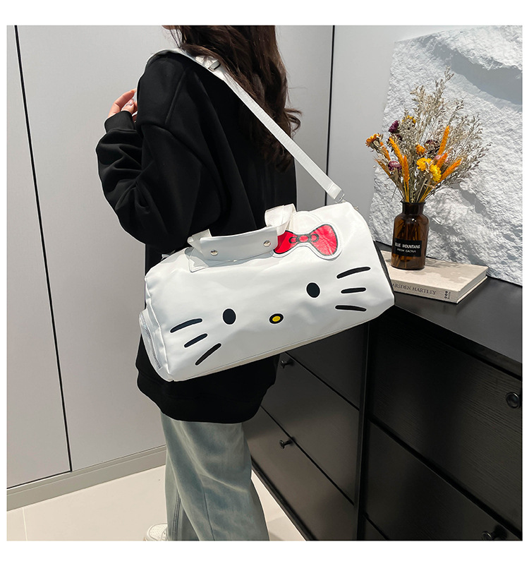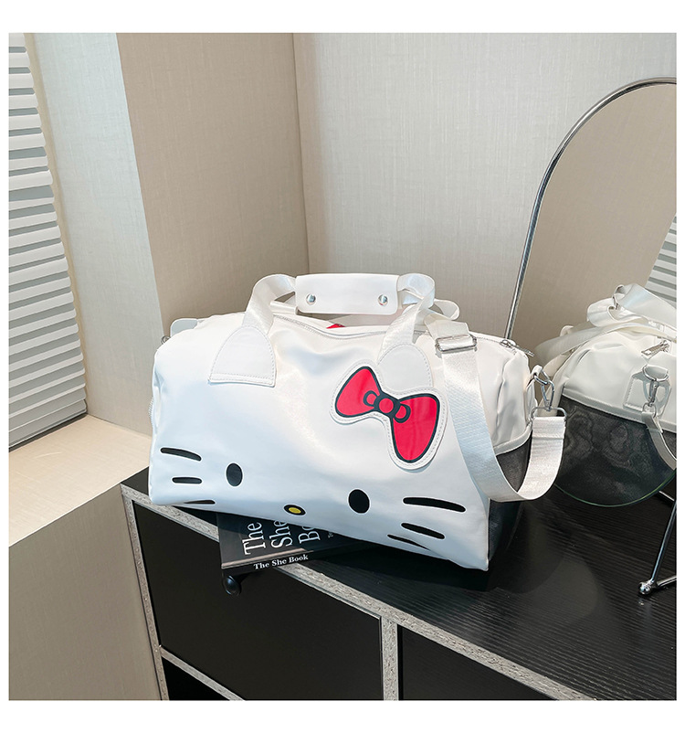 HelloKitty 만화 귀여운 대형 가방 어깨 활 헬로 키티 휴대용 피트니스 가방 크로스 바디 여행 가방