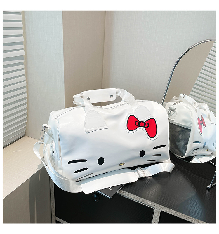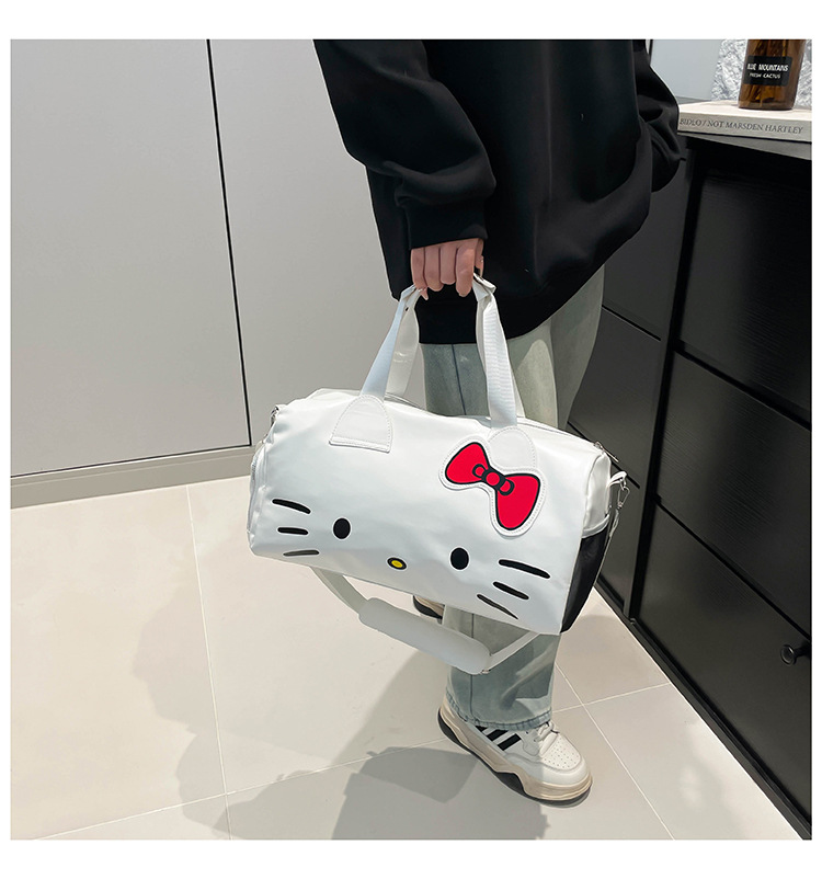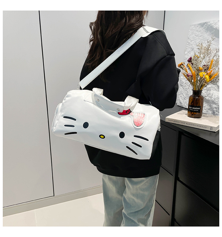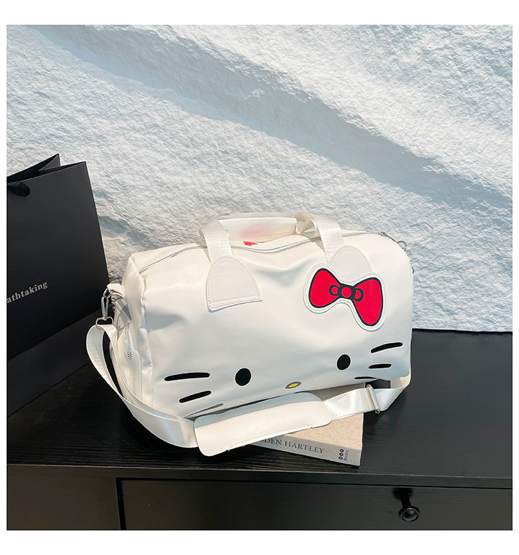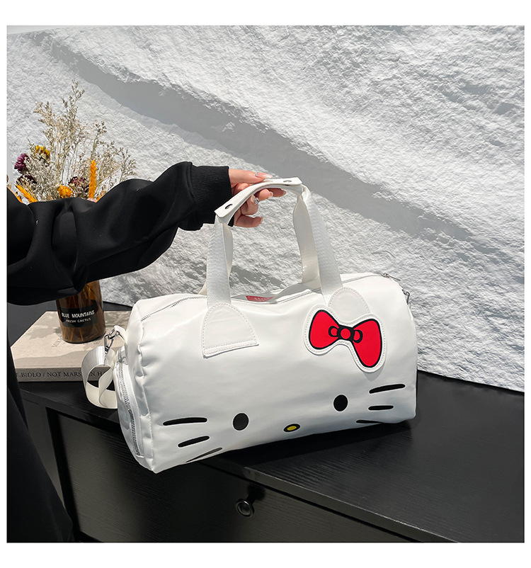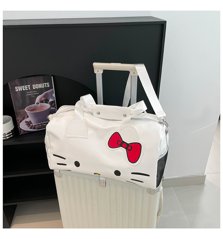 HelloKitty 만화 귀여운 대형 가방 어깨 활 헬로 키티 휴대용 피트니스 가방 크로스 바디 여행 가방