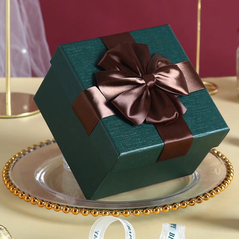 • 잔디 + 카드 + 램프가 포함된 짙은 녹색 상자 갈색 활 - 초대형 크기 28.5*28.5*26cm