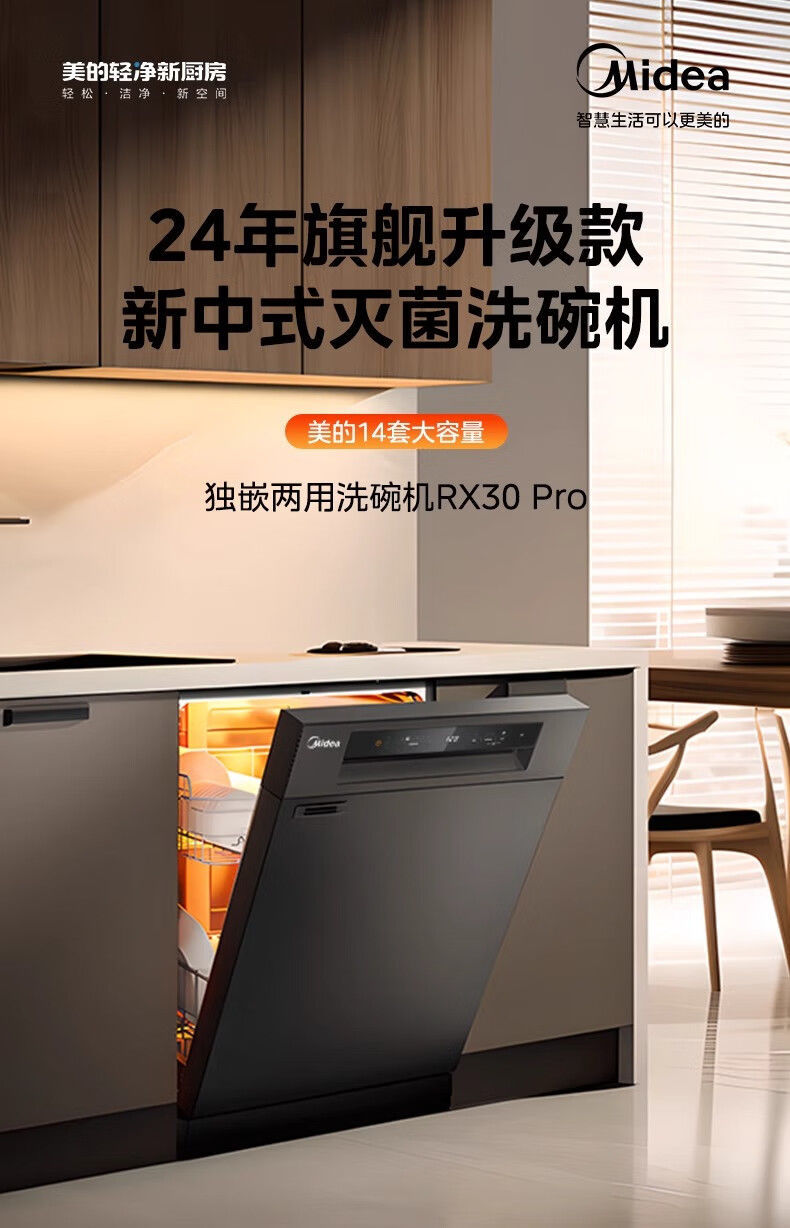 Midea 식기 세척기 14세트 내장형 가정용 완전 자동 열풍 건조 업그레이드 RX30 Pro스토어 가기
