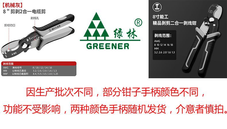 녹색 숲 와이어 스트리핑 펜치, 와이어 압착 및 스트리핑 가위, 다기능 전기 일본식 도구, 와이어 커터, 케이블 커터
