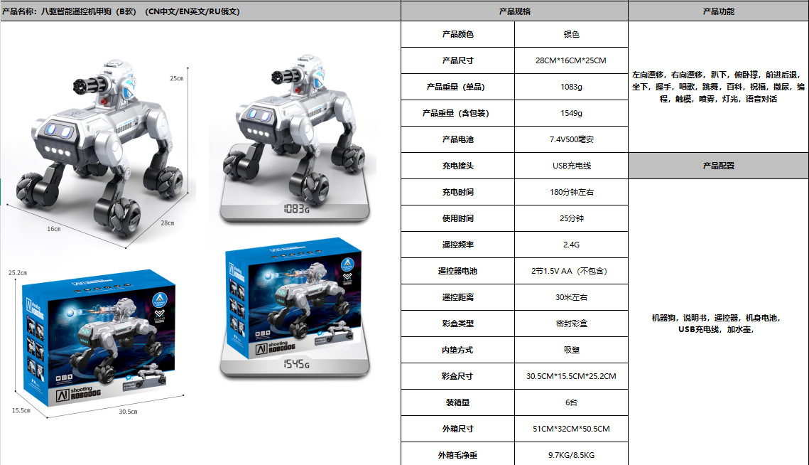 JJRC 국경 간 신제품 R37 8 드라이브 원격 제어 로봇 개 음성 대화 노래와 춤 어린이 장난감 원격 제어 개스토어 가기