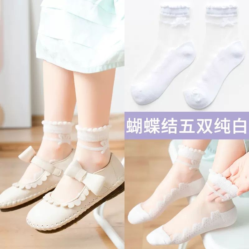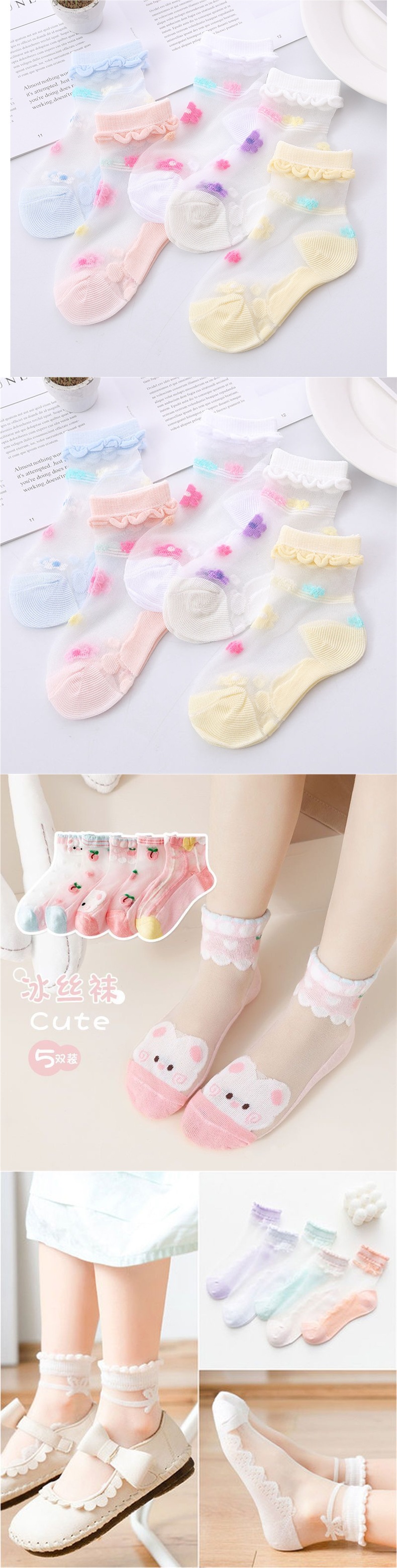 어린이 양말 여름 초박형 아기 얼음 실크 소녀 크리스탈 스타킹 솔리드 컬러면 양말 공주 통기성 메쉬 봄스토어 가기
