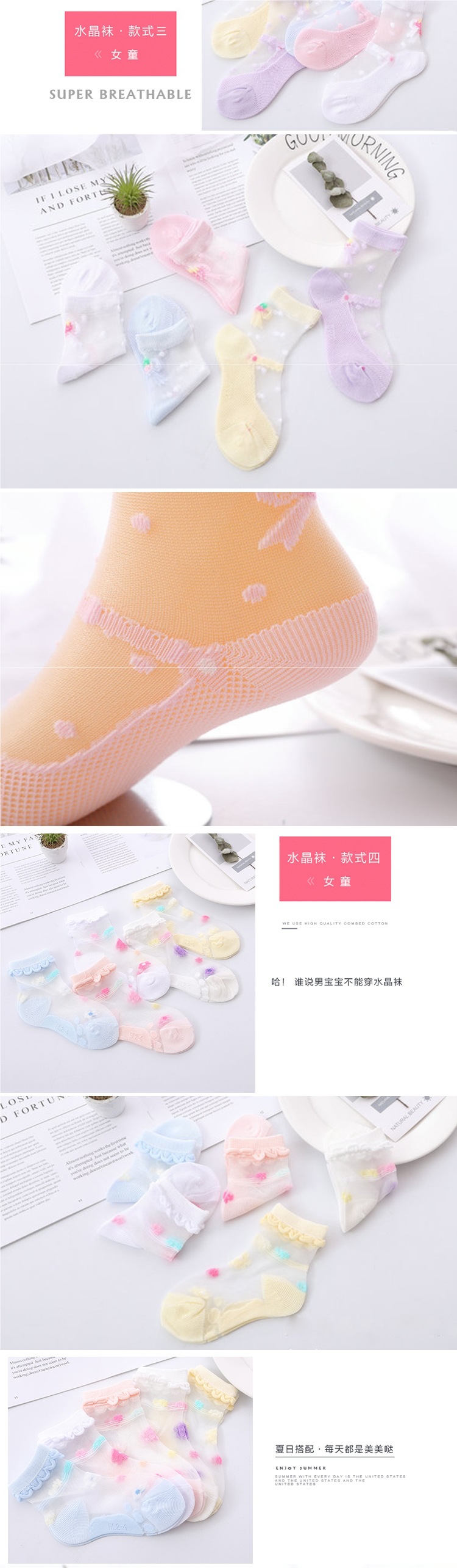어린이 양말 여름 초박형 아기 얼음 실크 소녀 크리스탈 스타킹 솔리드 컬러면 양말 공주 통기성 메쉬 봄
