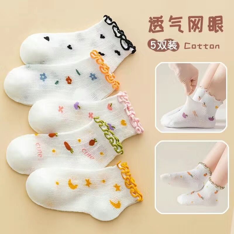 • [컬러풀 레이스] 메쉬 코튼 양말/중통/5켤레
