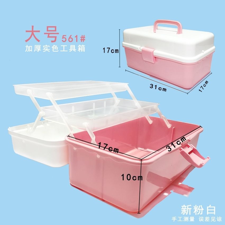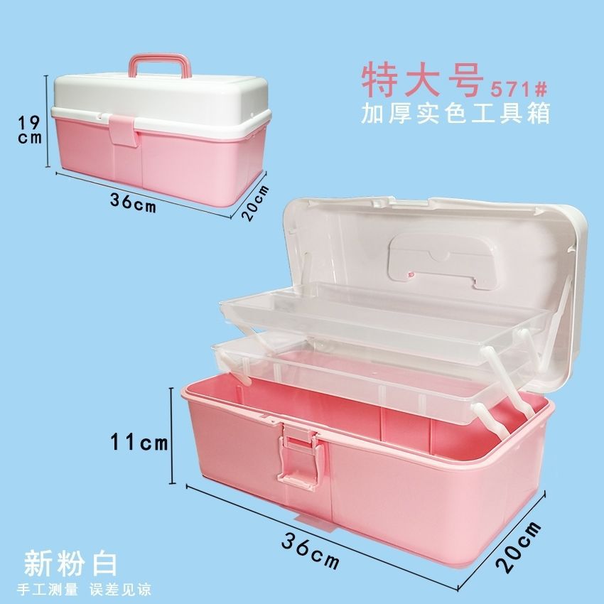 • 24년 만에 업그레이드된 두꺼워진 새로운 핑크색과 흰색 단색 도구 상자 대형 사이즈