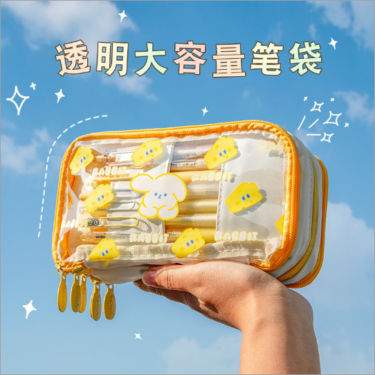 • 필통 소형 3D 더블 레이어 봄 나들이 토끼