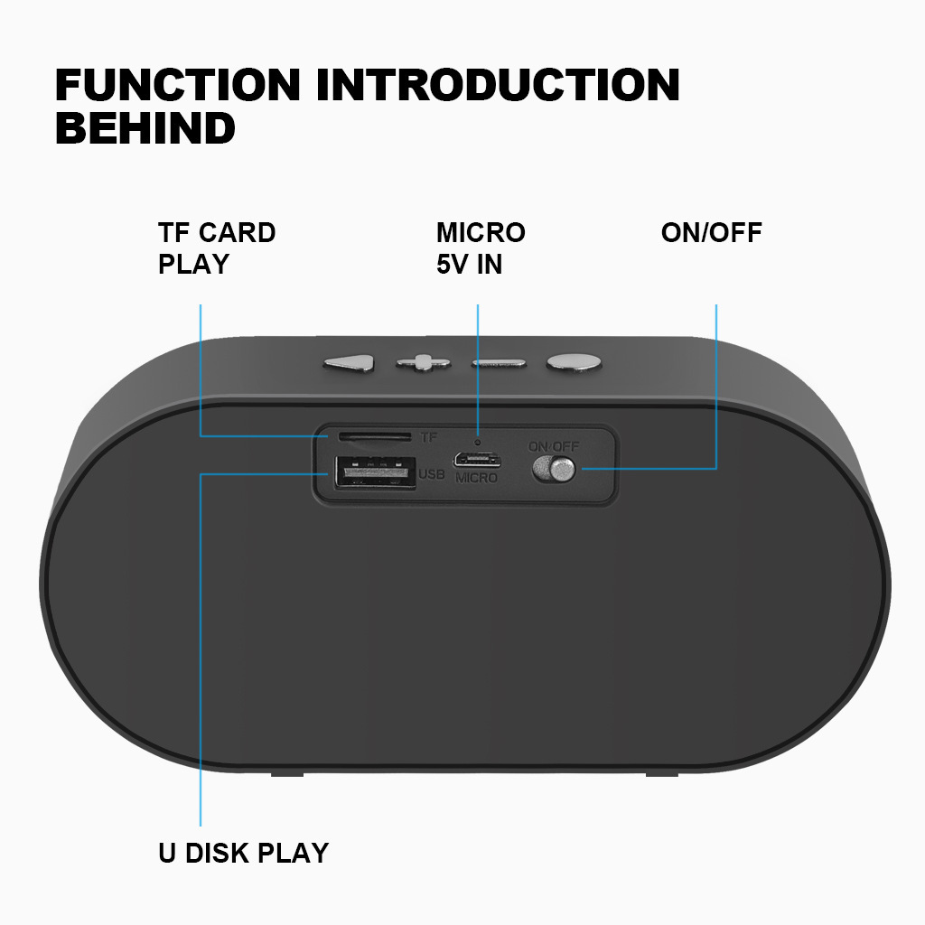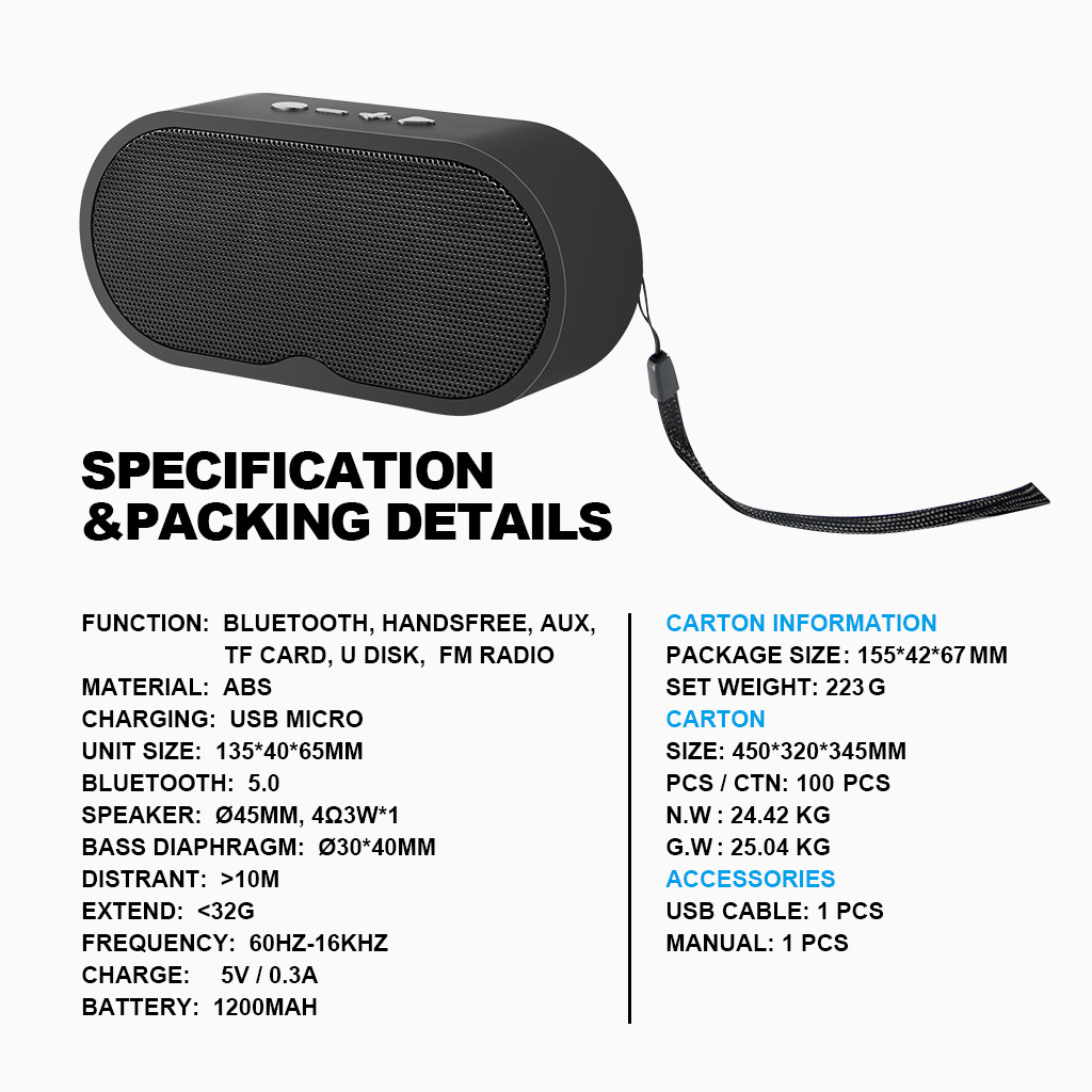 产品功能 蓝牙播放,免提通话,TF卡播放,U盘播放,AUX播放,FM收音机