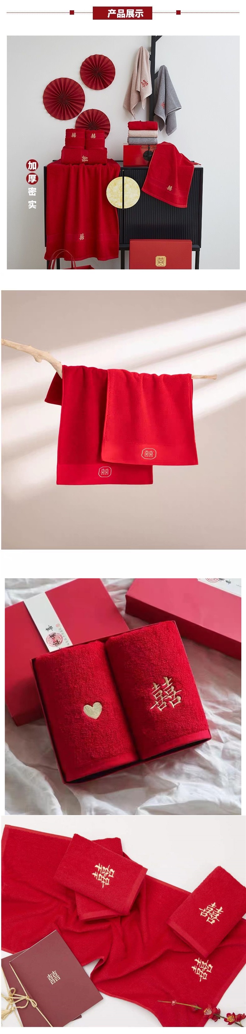 웨딩 타월, 결혼식 순면 답례품, 빨간색 한 쌍의 선물 상자, 결혼식 및 기념일 기념품스토어 가기