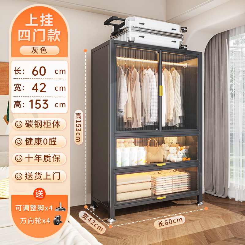 가정용 새로운 탄소강 옷장 침실 대용량 다기능 스토리지 캐비닛 스토리지 캐비닛 통합 벽걸이 방진 옷장스토어 가기