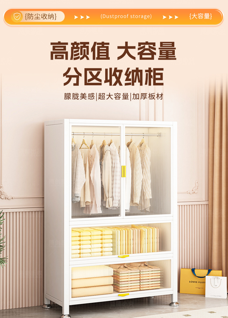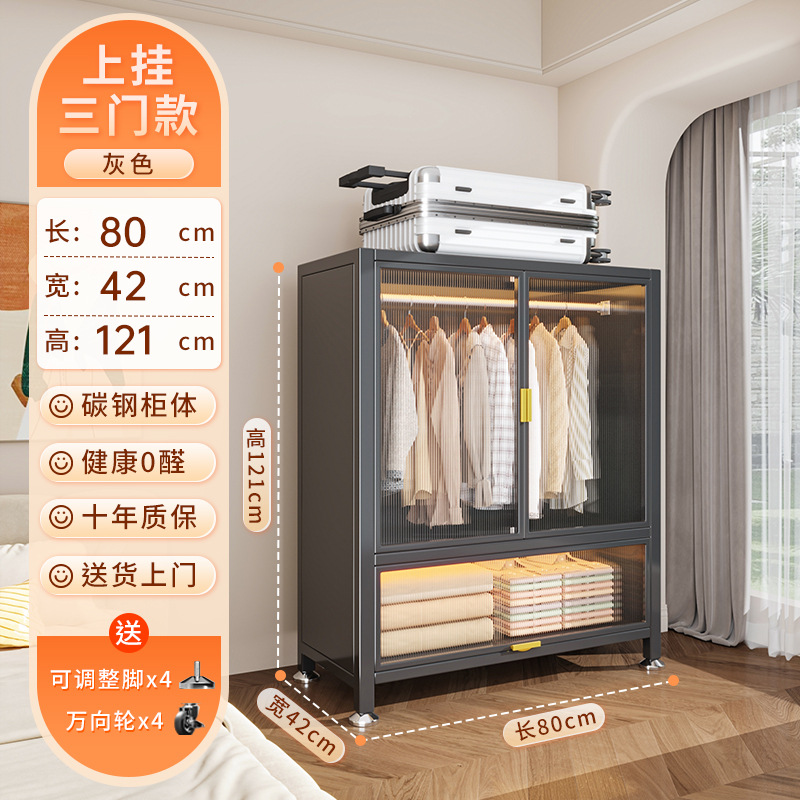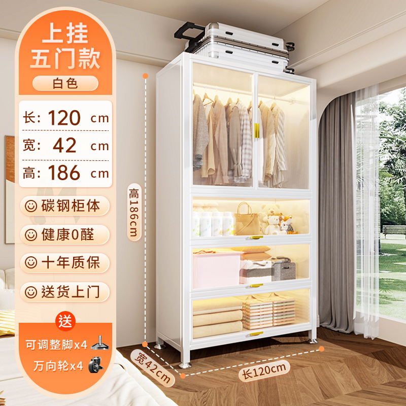 가정용 새로운 탄소강 옷장 침실 대용량 다기능 스토리지 캐비닛 스토리지 캐비닛 통합 벽걸이 방진 옷장