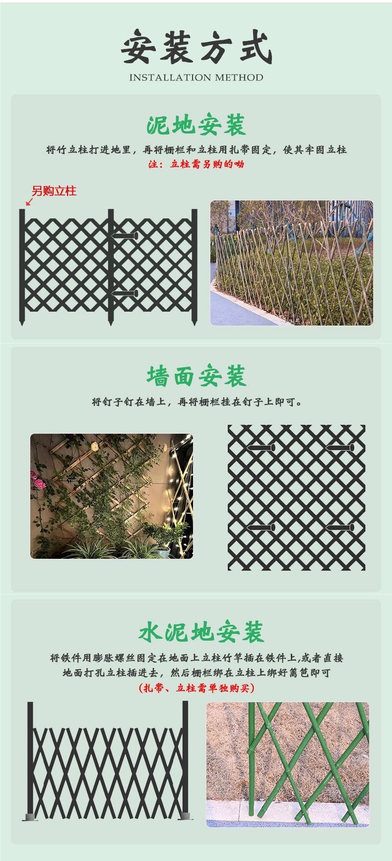 접이식 대나무 울타리 야외 원예 안뜰 야채 정원 정원 울타리 대나무 막대 등반 그물 장식 대나무 울타리